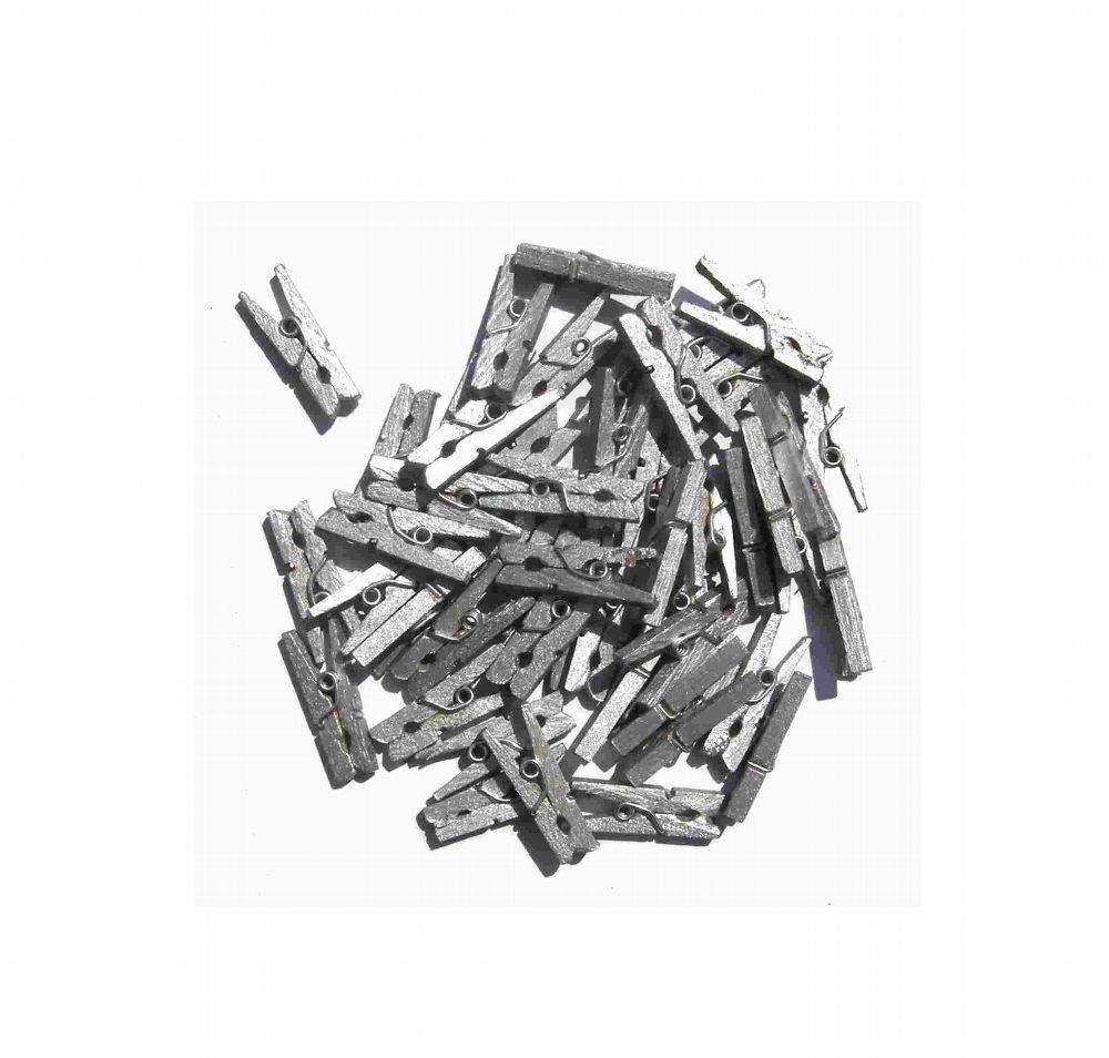 48 Mini Dekoklammern DEKO Wäscheklammern Clip Klammer aus Holz Farbe silber