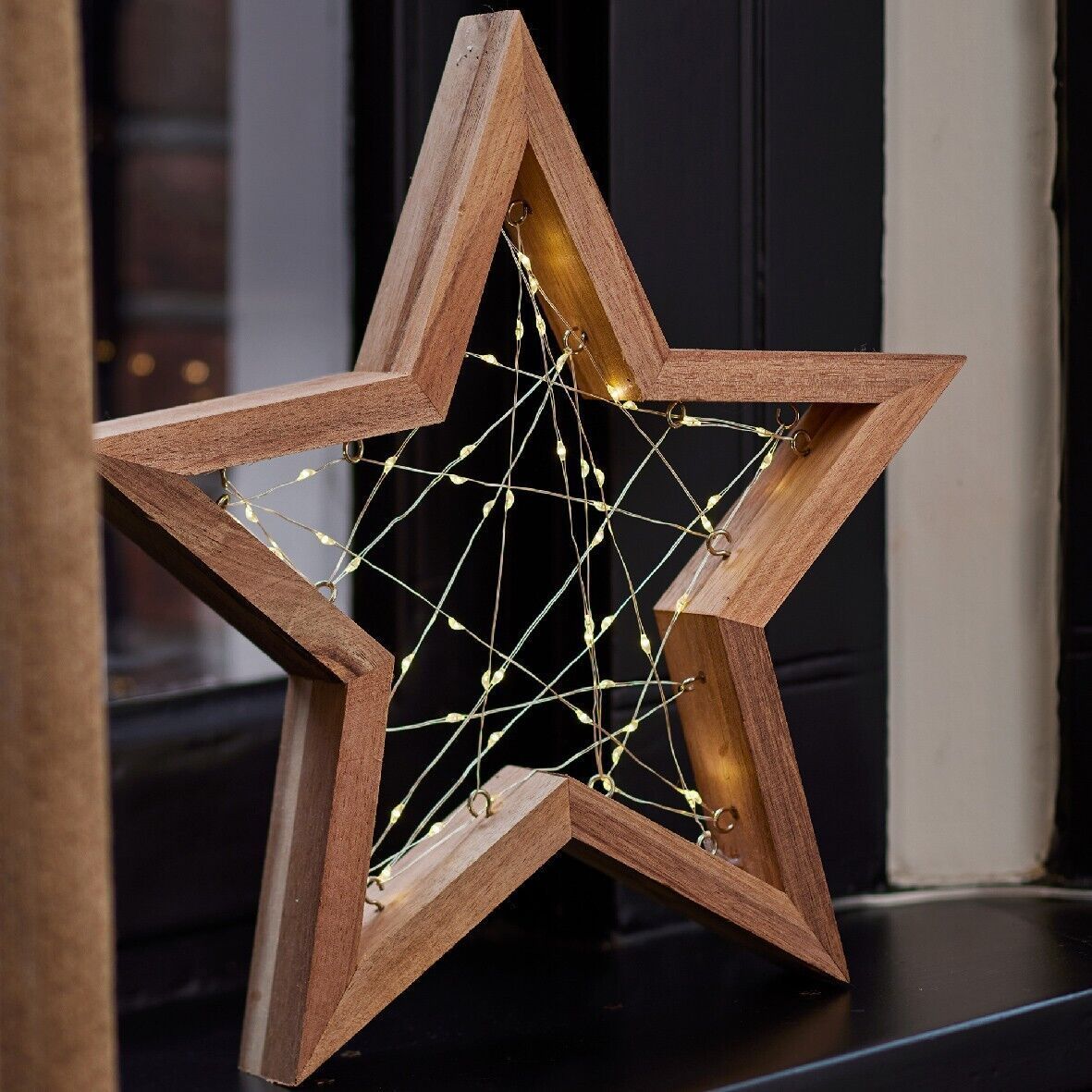 489596 Micro LED Rahmenbeleuchtung Stern Holz indoor L.3.5cm B.29.5cm H.31cm