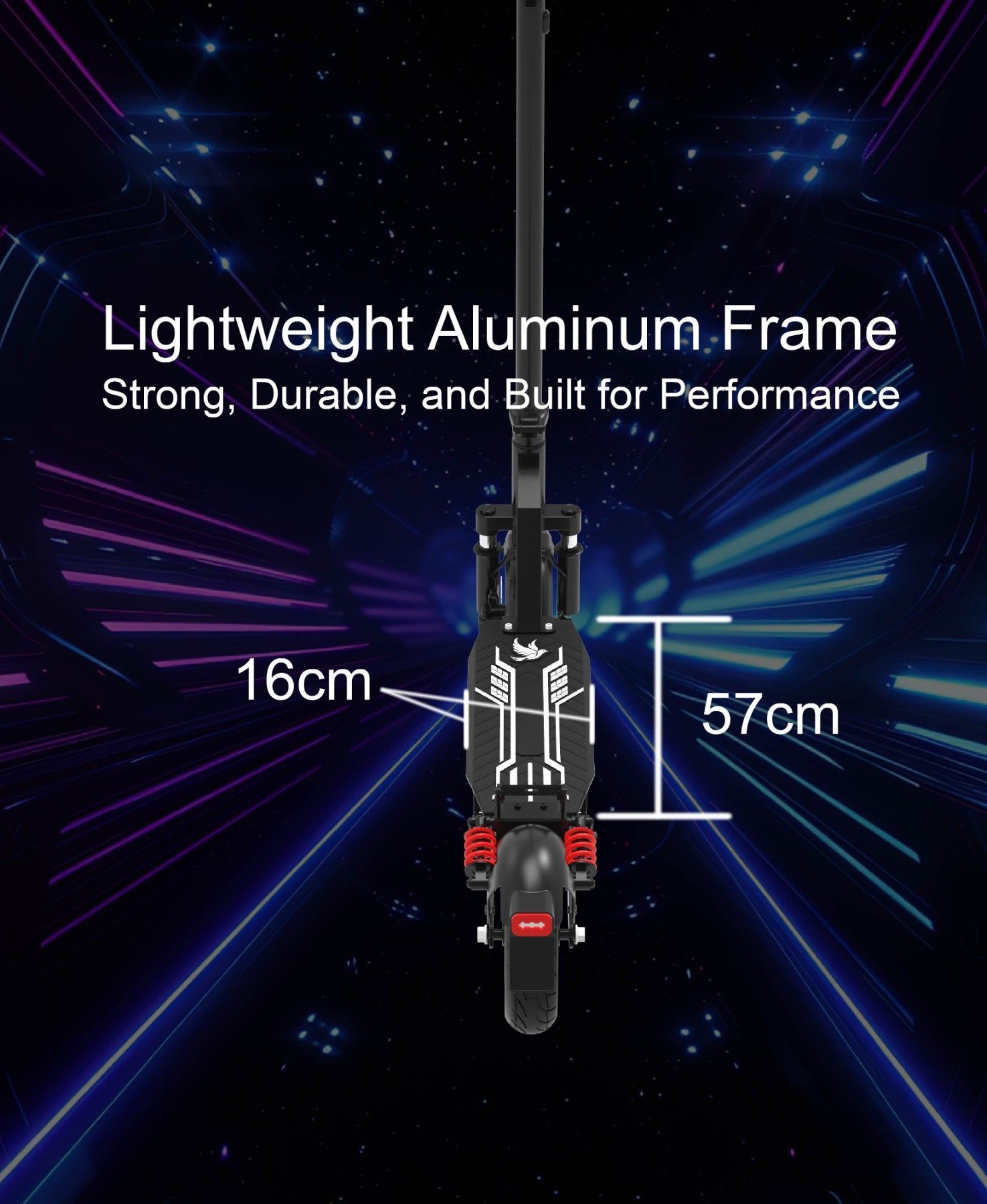 Model : DT08 Battery Capacity : 48V 13Ah Rated Power : 500W Peak Power : 1100W Tire Size : 10 inch Tubeless Vacuum Tire Frame Material : Aluminum Alloy Open Size : 120x65x125cm Packing Size : 122x20x60cm Suspension : Front and Rear Spring Shock Absorption Brake : EABS & Front Disc Brake Range :