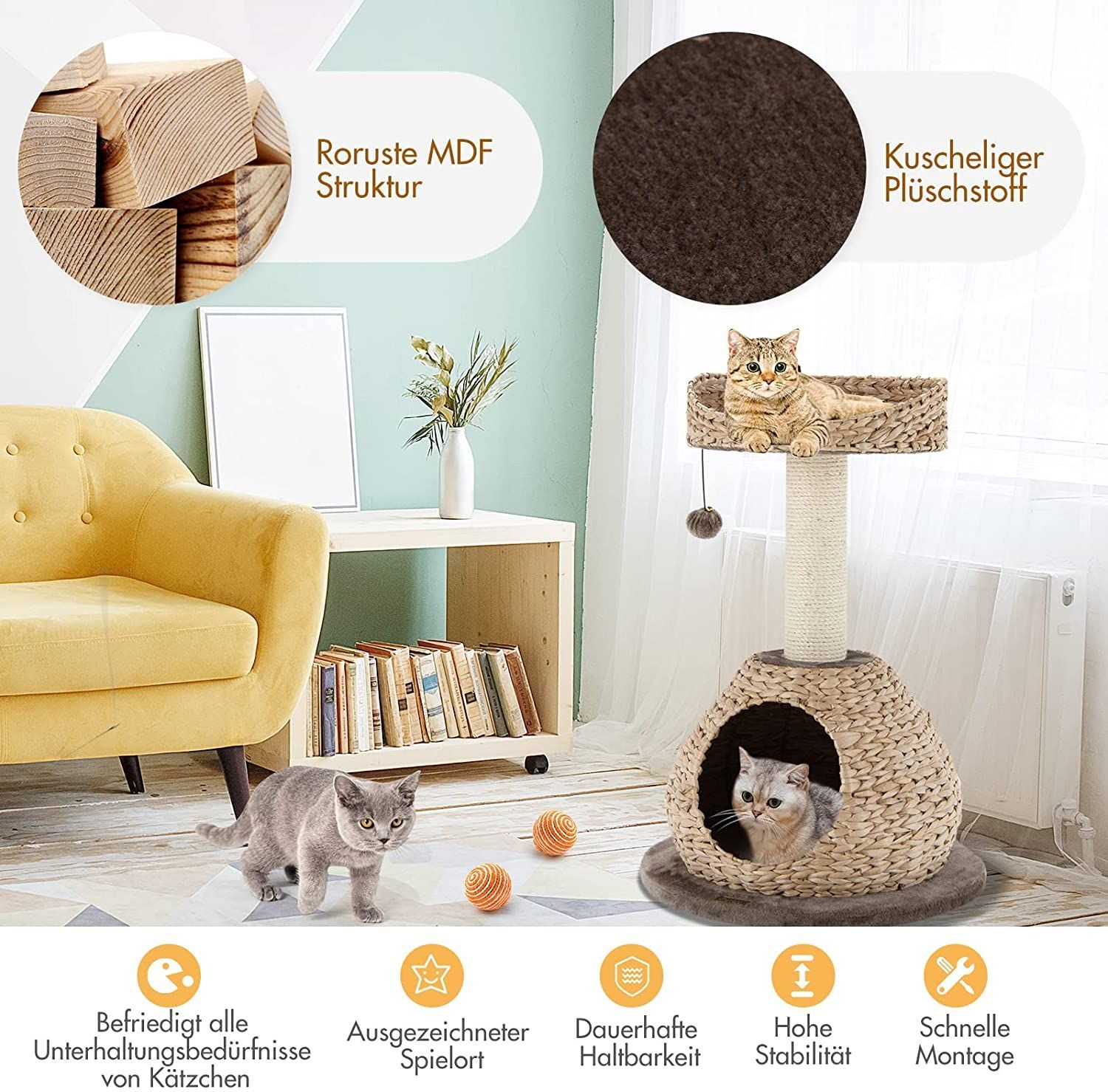 48x70,5cm Katzenbaum mit Höhle, Katzenkratzbaum Holz, Katzen Kratzbaum, Kletterbaum