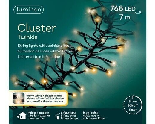 494787 Lumineo Twinkle Beleuchtung Kette Schwarz 768 LED Lichterkette 7,0m
