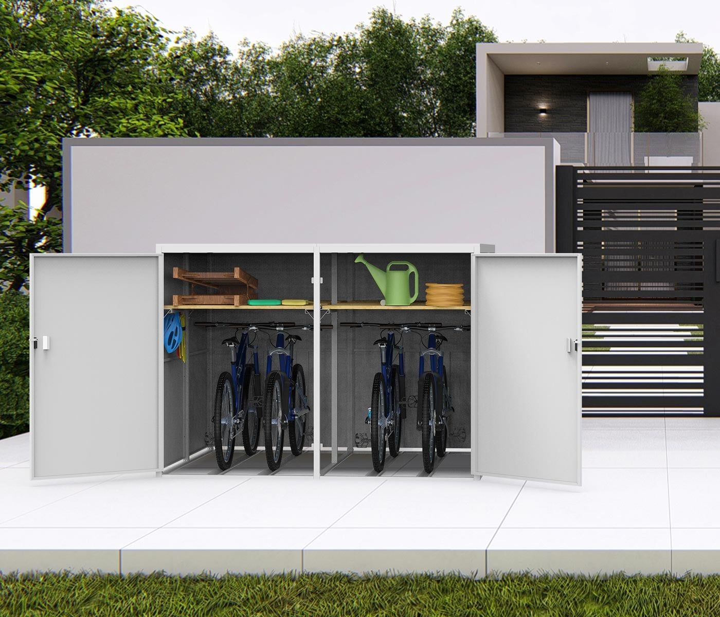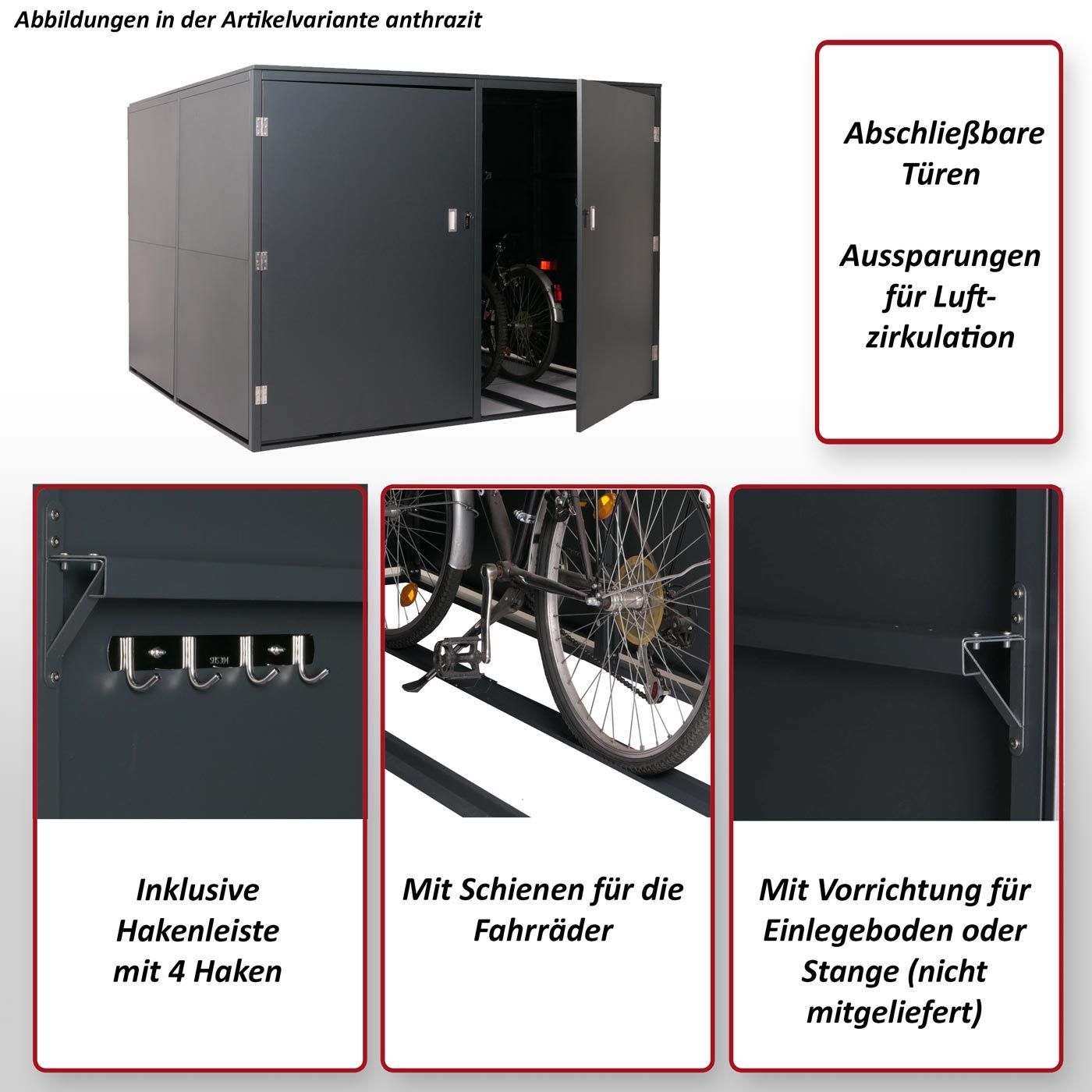 Mendler 4er-Fahrradgarage HWC-L56c, Fahrradbox mit Ablage, abschließbar Stahl 160x222x208cm