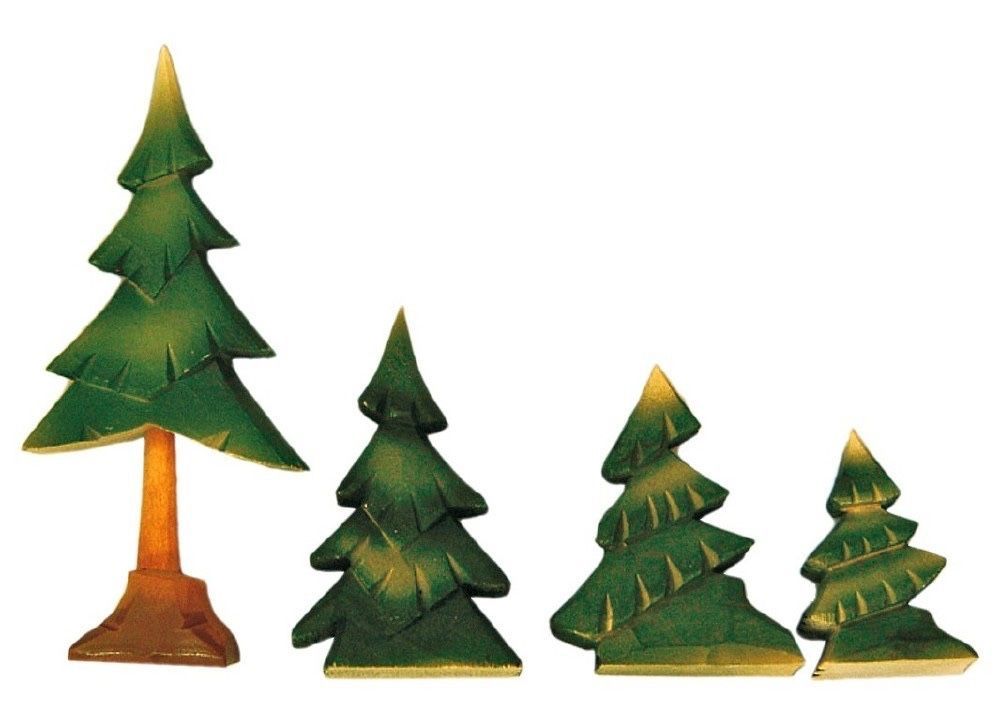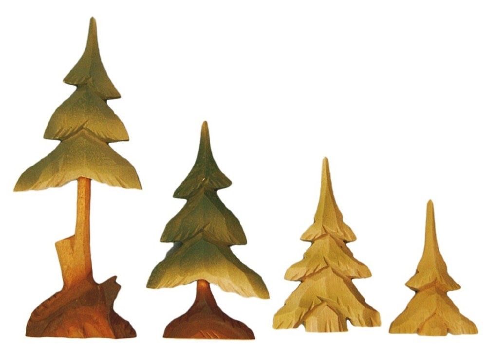 geschnitzte Baumgruppe Baumgruppe bestehend aus 4 Bäumchen, flach, geschnitzt, Höhe 6, 8, 10 und 16cm.