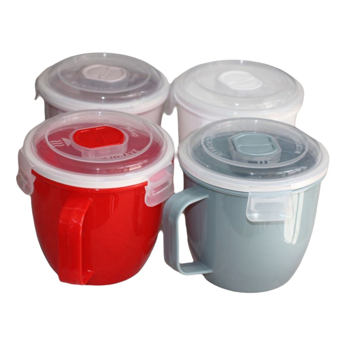 emeco 4er Mikrowelle Suppenschüssel mit Deckel & Griff 620ml | Essen Brei Nudeltasse