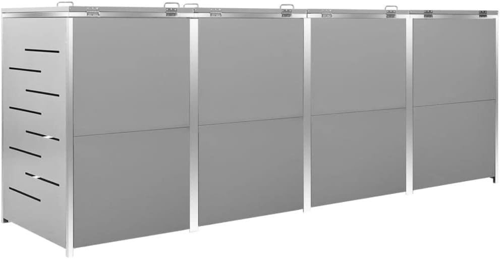 4er Mülltonnenbox JAGU Edelstahl Grau 115,5x276,5x77,5cm Mülltonnenverkleidung für 4