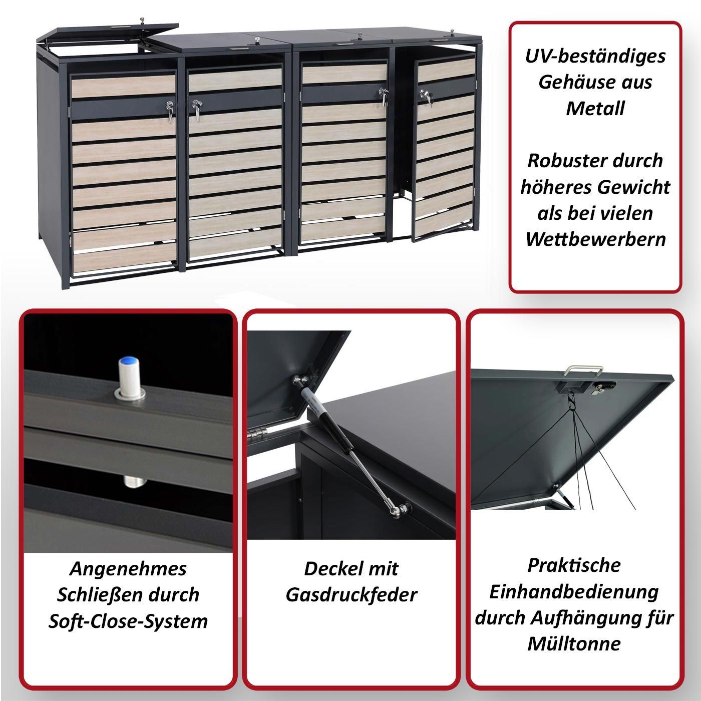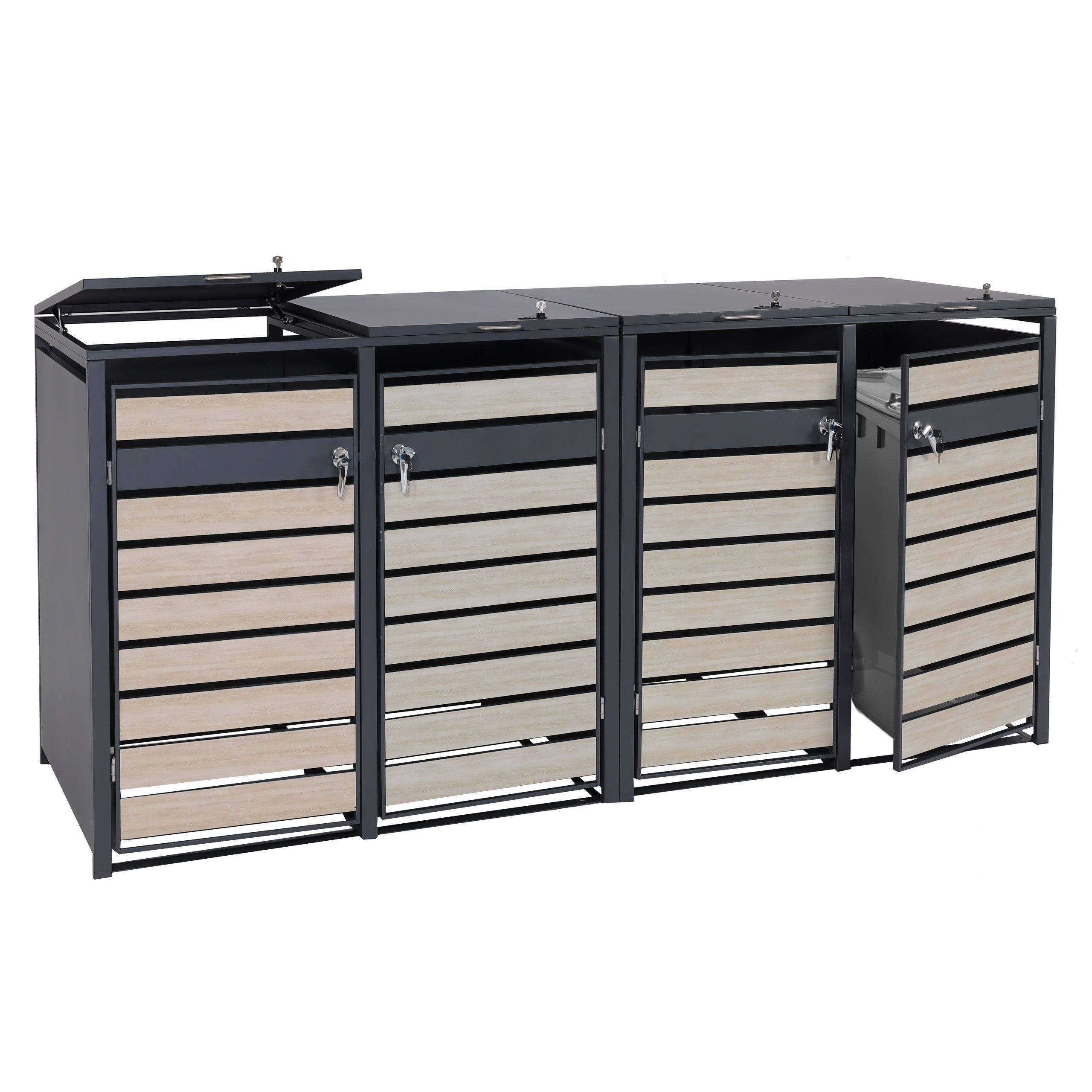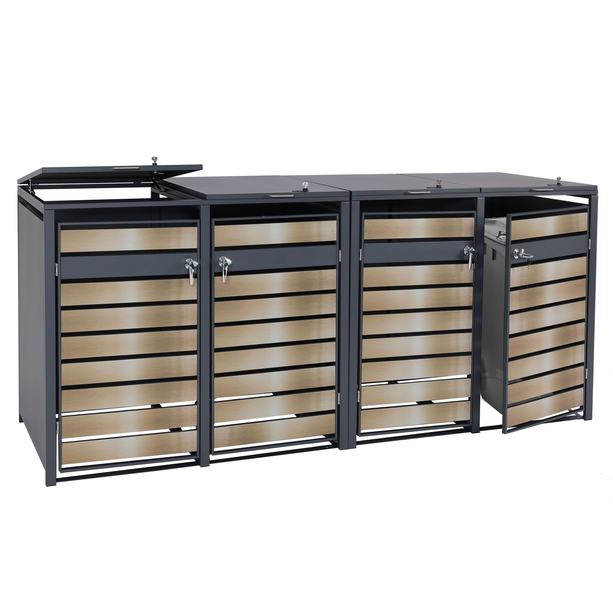 Mendler 4er Mülltonnenverkleidung HWC-J81, Mülltonnenbox, erweiterbar, Metall, anthrazit