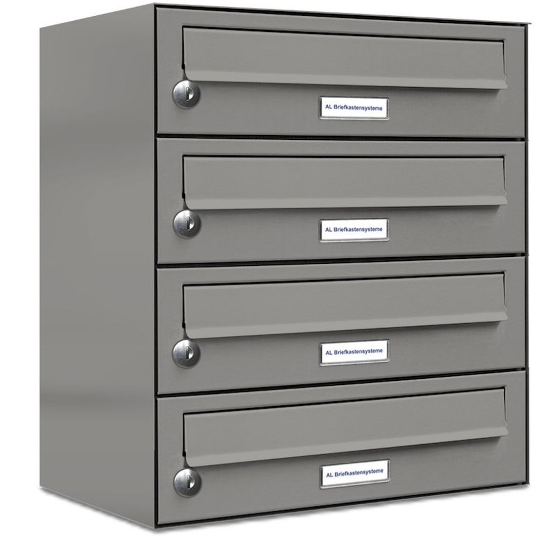 4er Premium Briefkasten Aluminiumgrau RAL 9007 für Außen Wand Postkasten 1x4 L