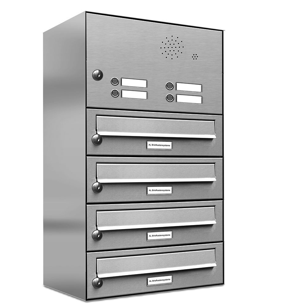 4er Premium Edelstahl Briefkasten Außen mit Klingel Wand Postkasten design 1x4