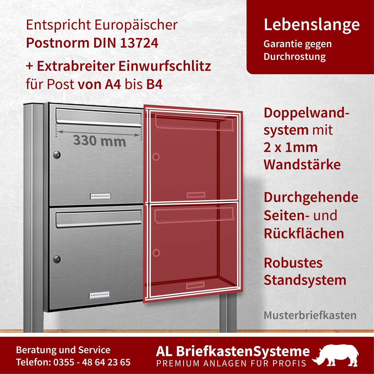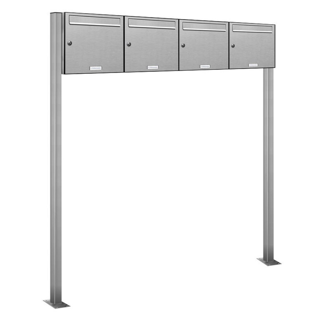 4er Premium Standbriefkasten Edelstahl Anlage freistehend Postkasten Ständer 4x1