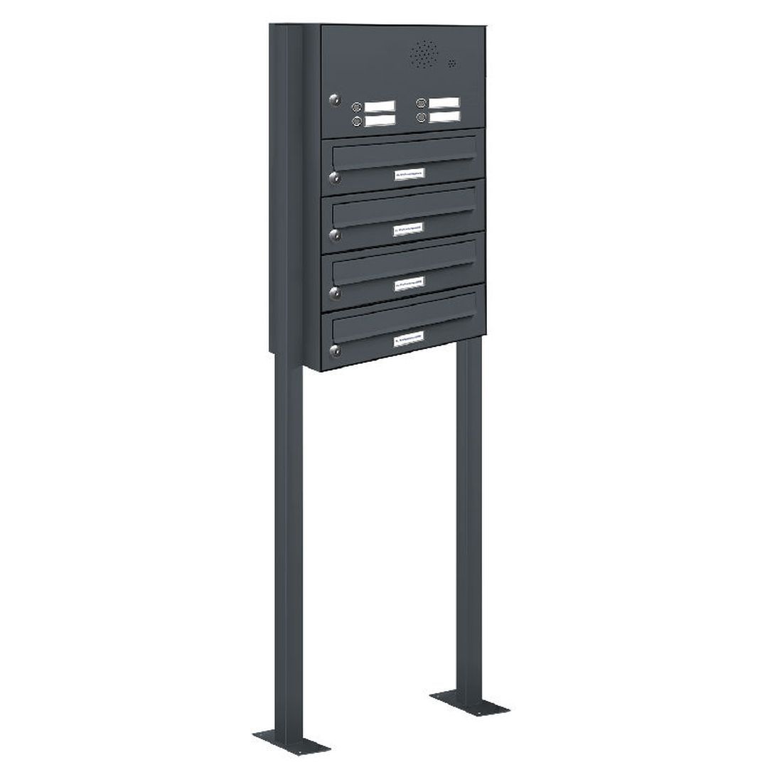4er Premium Standbriefkasten Klingel Anthrazit RAL 7016 Postkasten Ständer 1x4