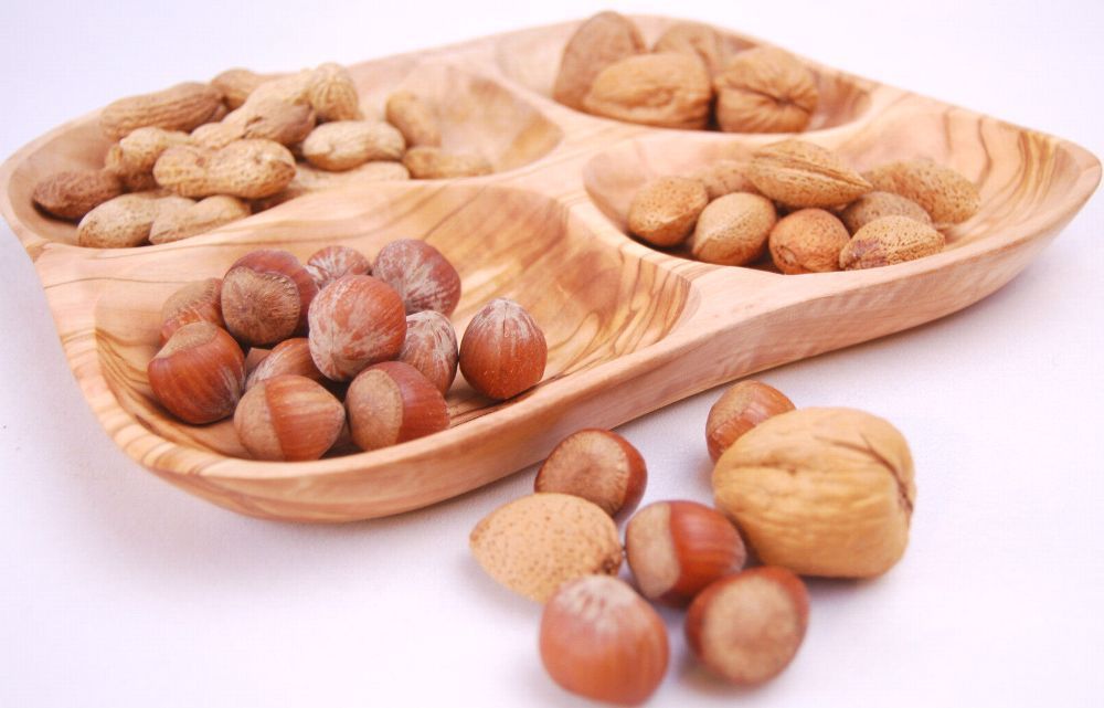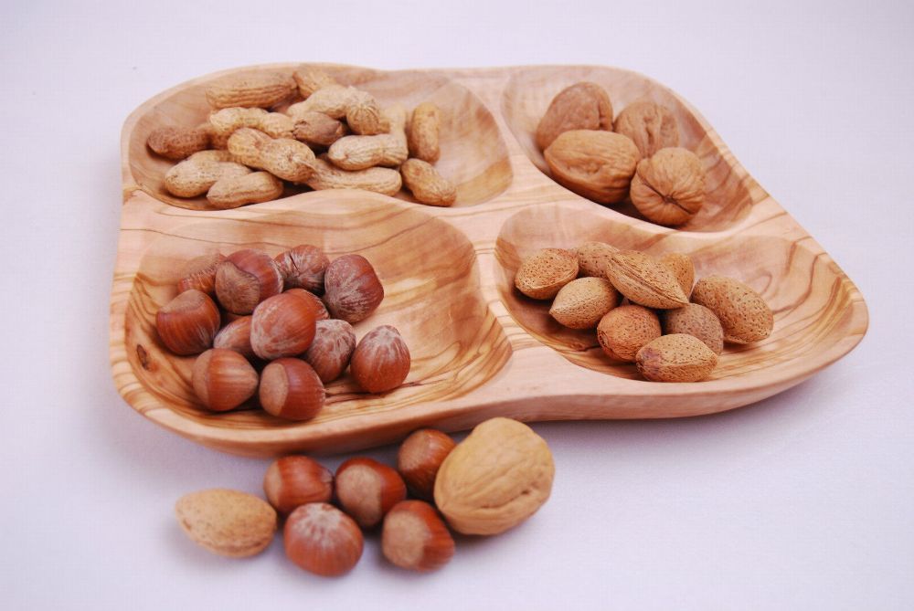 4er Schale Dipschale aus Olivenholz 4er Fach Holzschale Olivenschale Nußschale