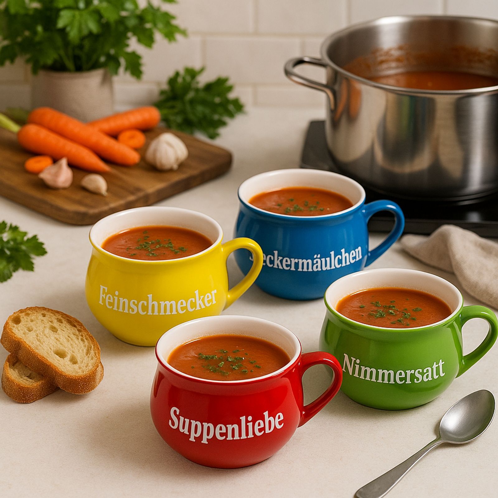 4er Set 400 ml Suppentasse Suppentassen Suppenschüssel Suppenterrine Tasse Suppe
