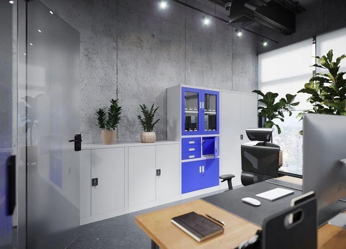 4er Set Aktenschrank Metallschrank Büroschrank 195 cm x 90 cm x 40 cm FarbeGrau