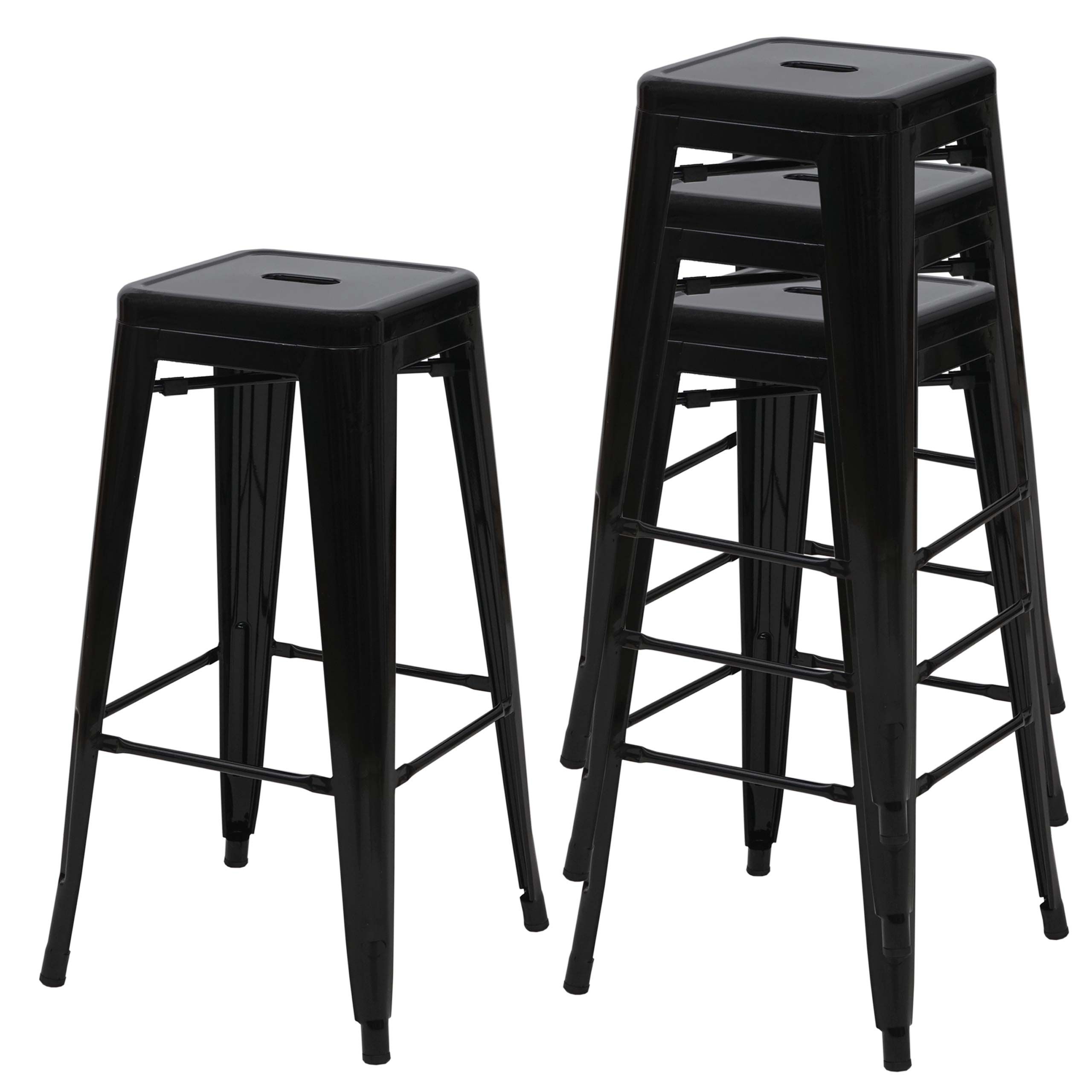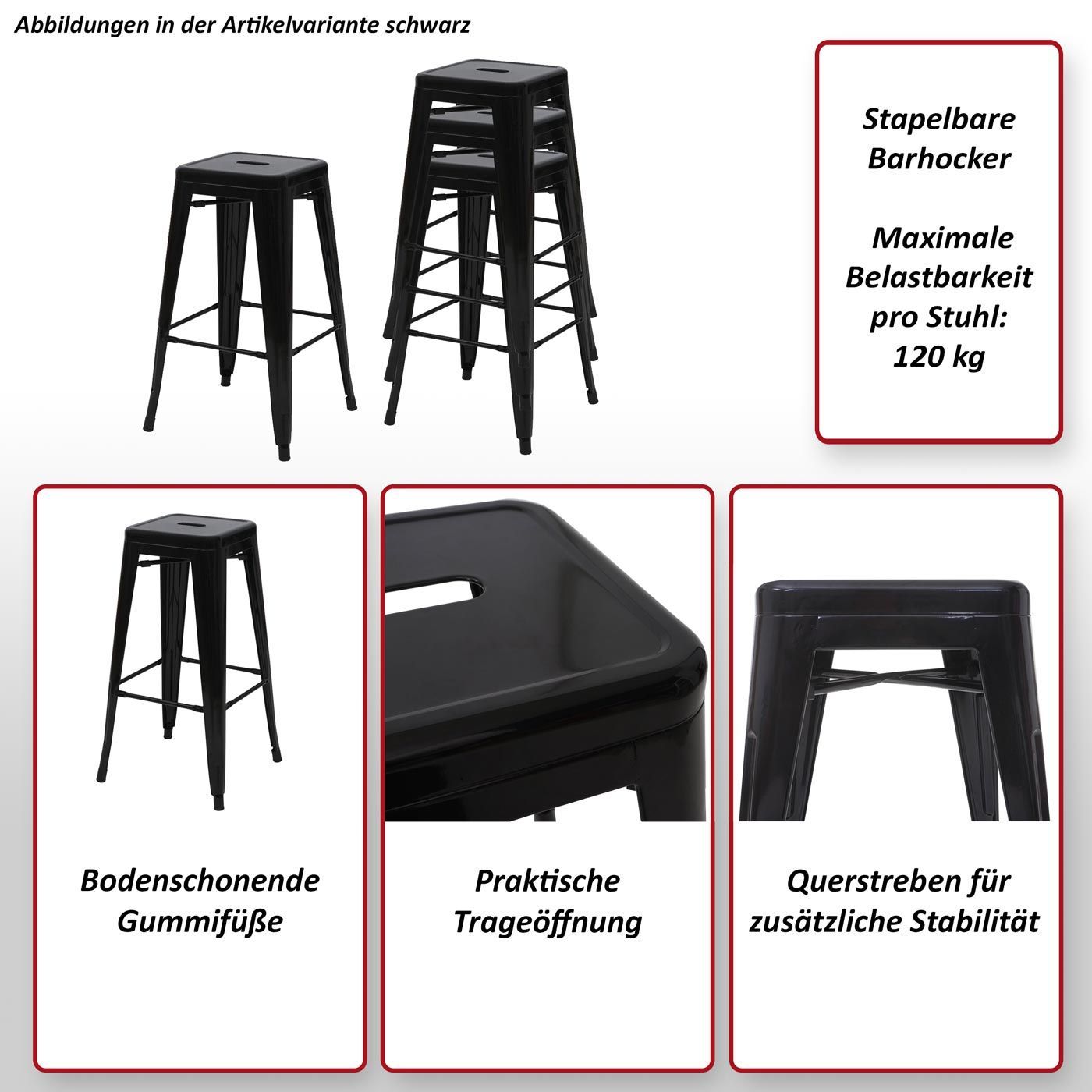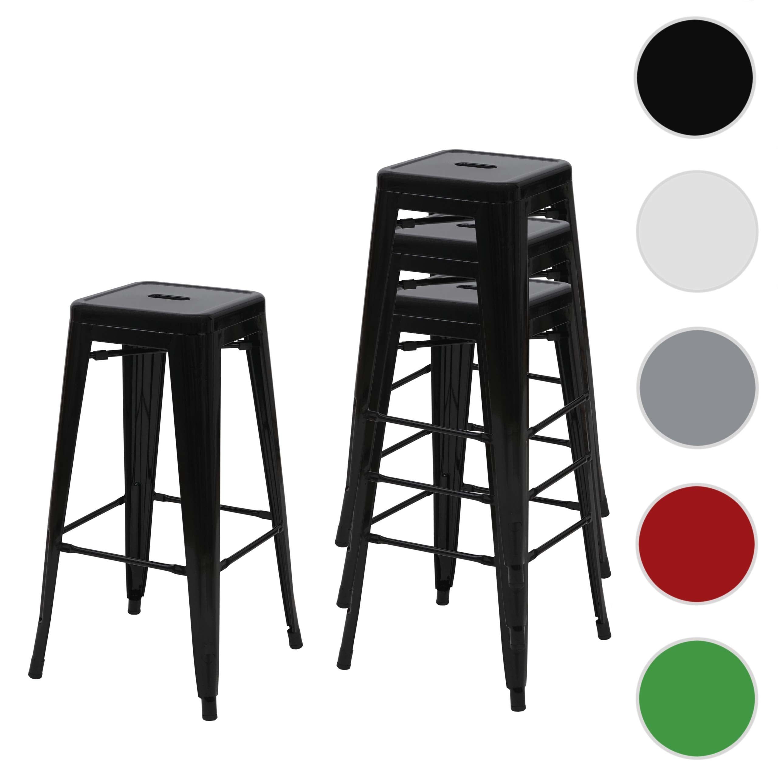 Mendler 4er-Set Barhocker HWC-A73, Barstuhl Tresenhocker, Metall Industrial stapelbar schwarz