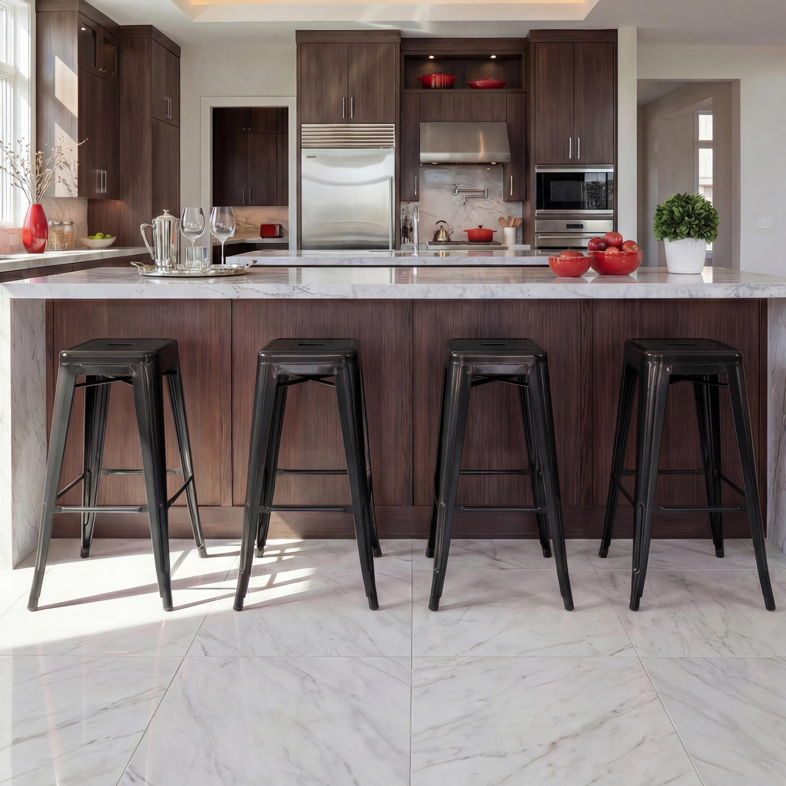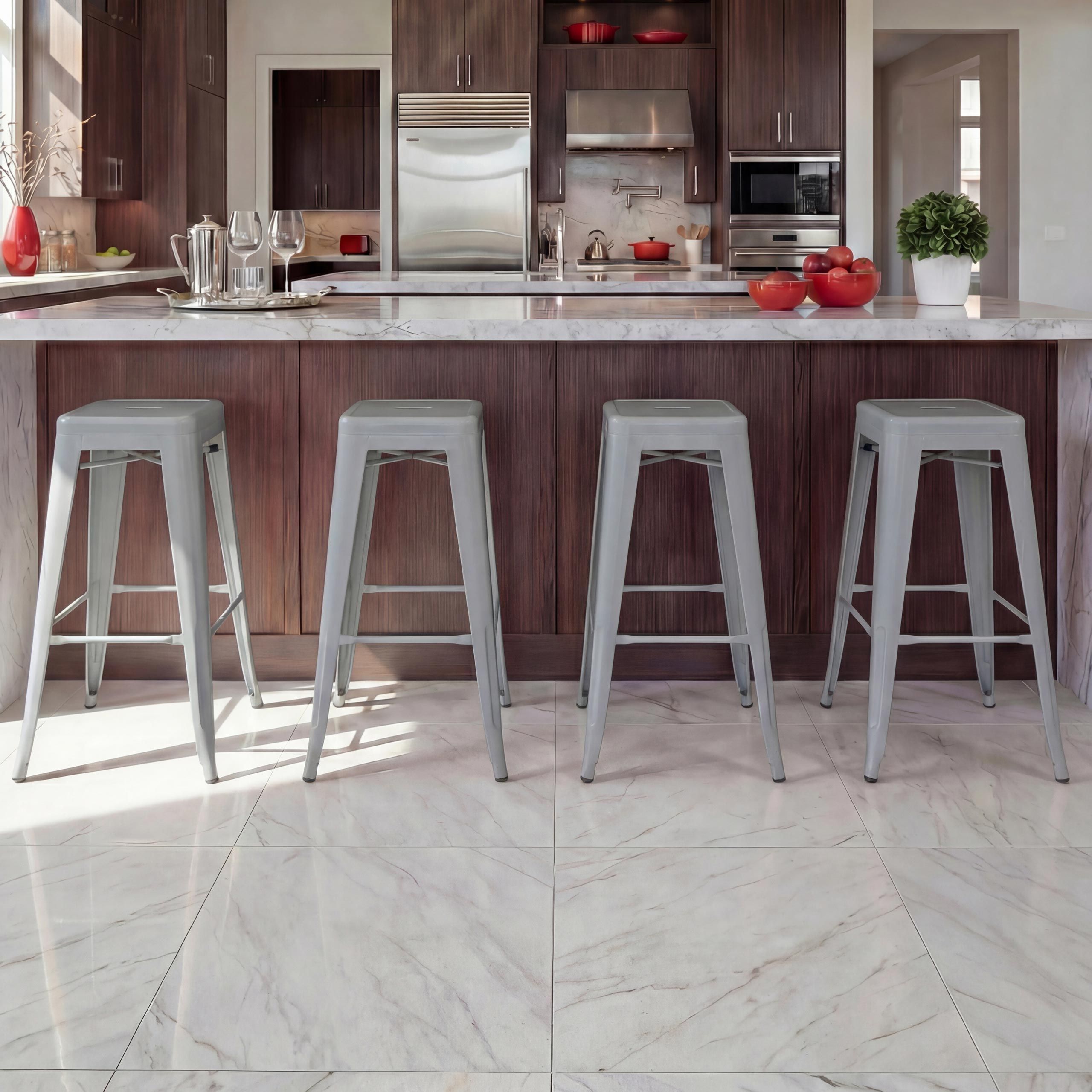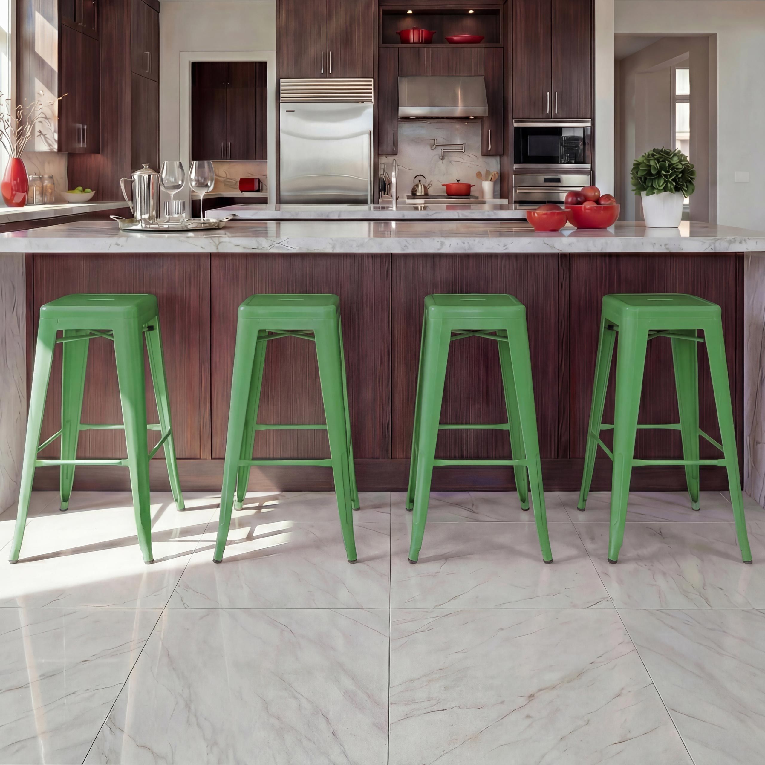 Mendler 4er-Set Barhocker HWC-A73, Barstuhl Tresenhocker, Metall Industrial stapelbar schwarz