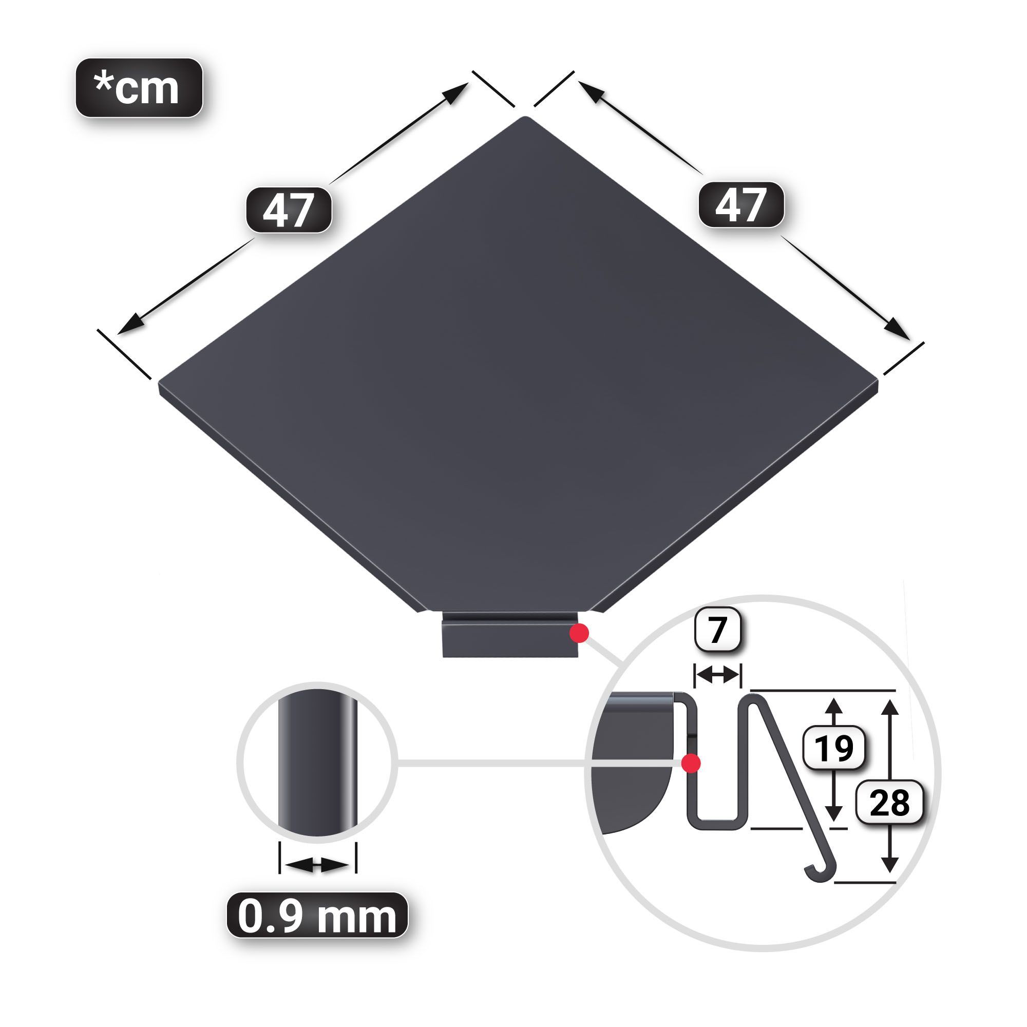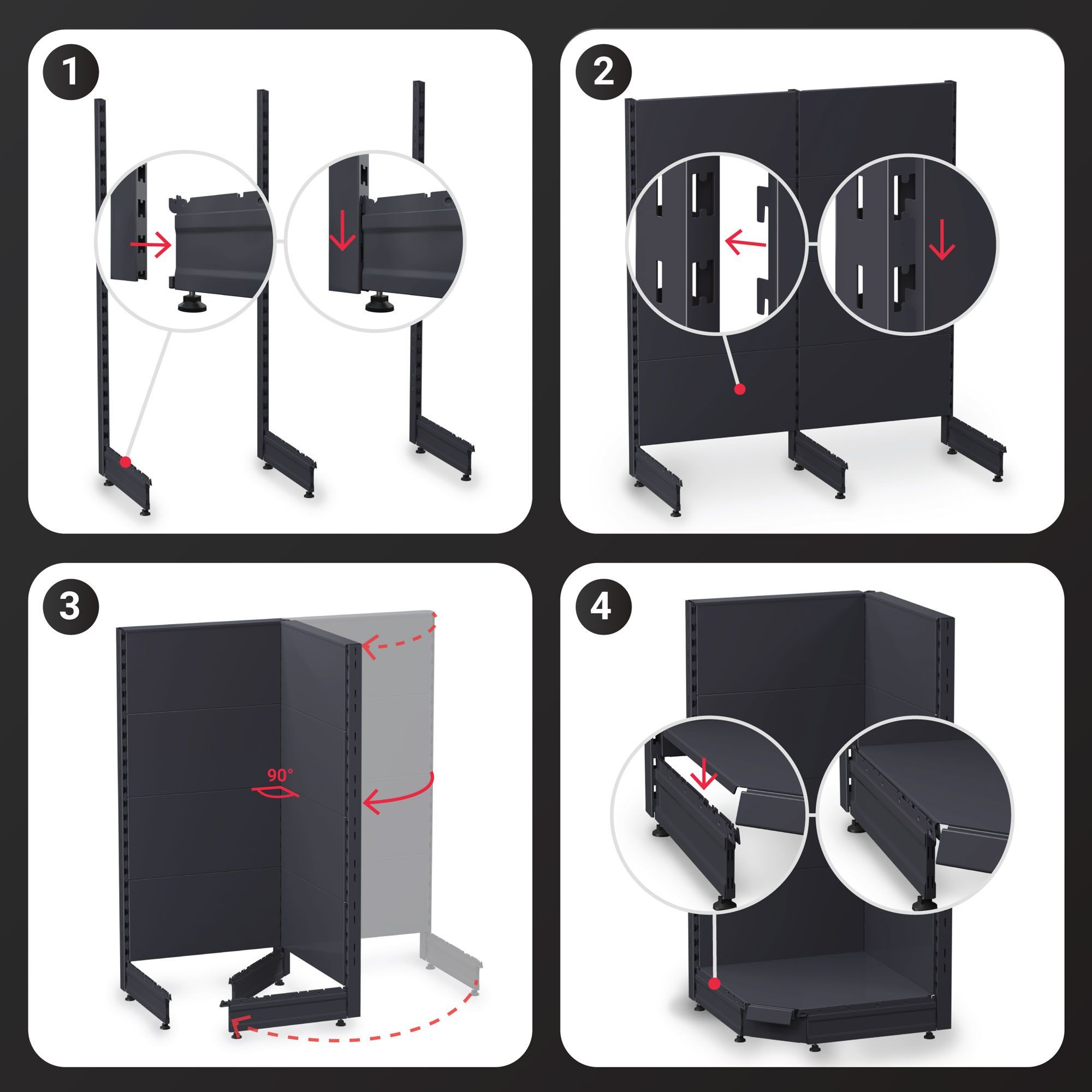 4er-Set Brooklyn | Eckboden | 47x47cm | Anthrazit | ECK-INNEN | Gondel Eckboden, Teg
