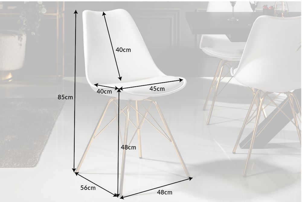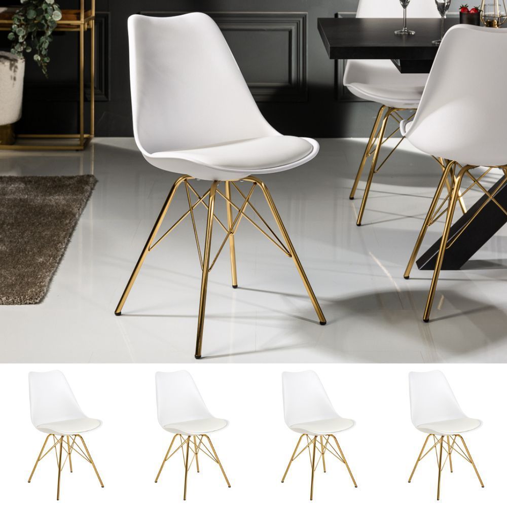 4er Set Design-Klassiker Stuhl NORWAY weiss-gold Retro