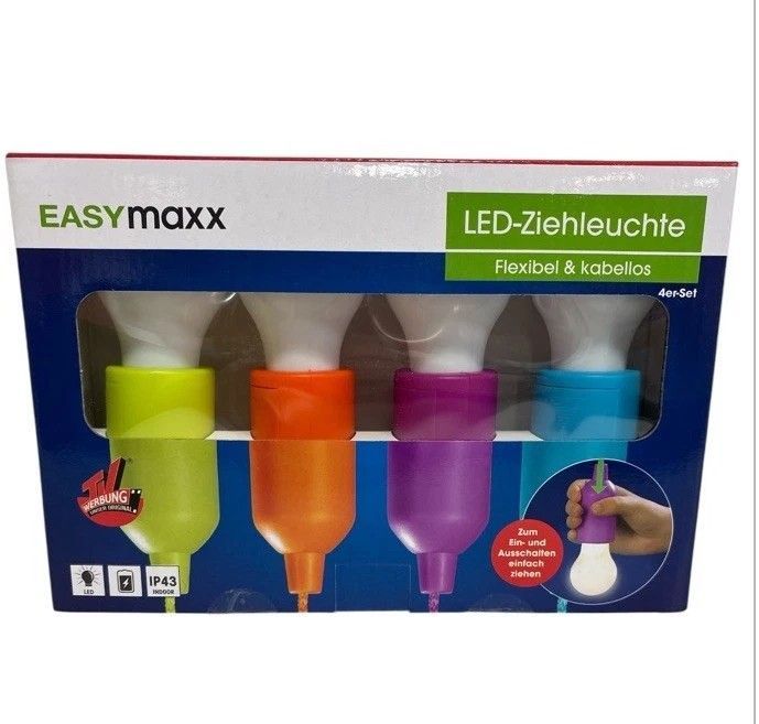 4er Set Easymaxx LED Ziehleuchte Leuchte flexibel kabellos Bunt
