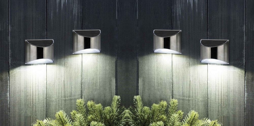 4er Set Edelstahl Solar Wandleuchte jeweils 4 weiße SMD LED 10x8x5cm 35288