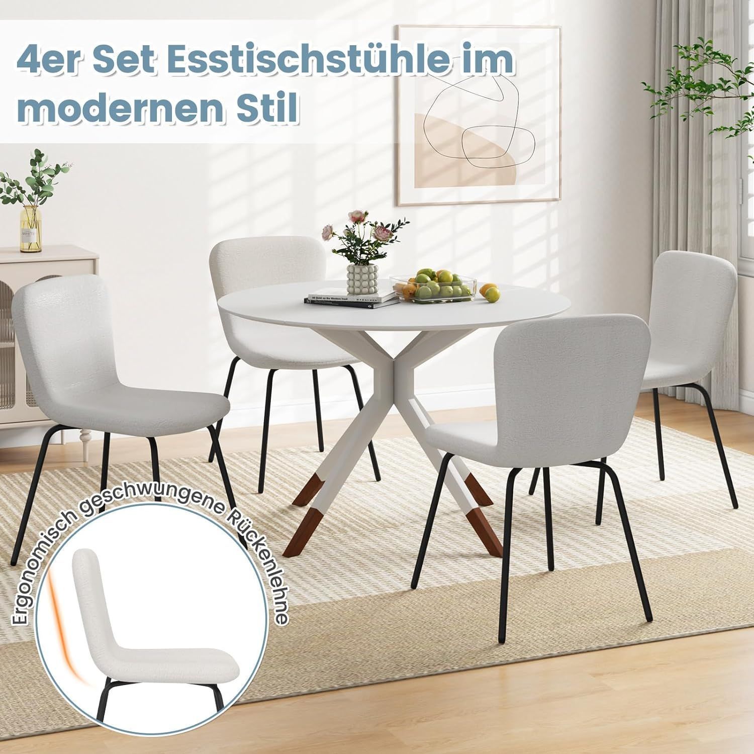 4er Set Esszimmerstühle, gepolsterte Küchenstühle mit Rückenlehne, Sitzhöhe 49cm