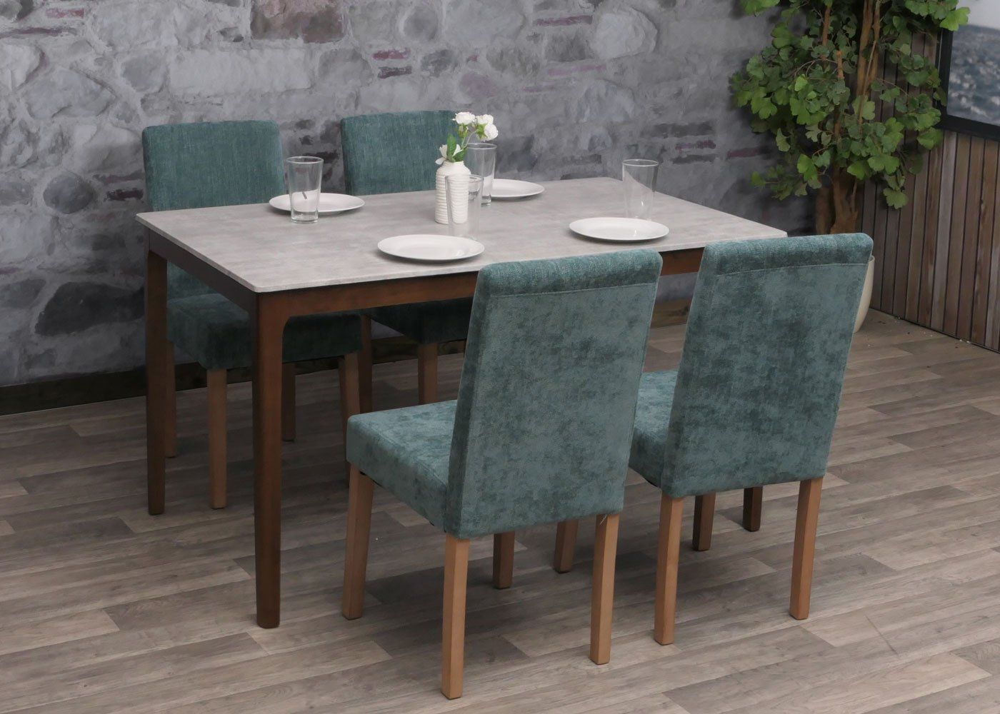 Mendler 4er-Set Esszimmerstuhl Littau, Stuhl Hochlehner, Stoff/Textil Chenille Holz