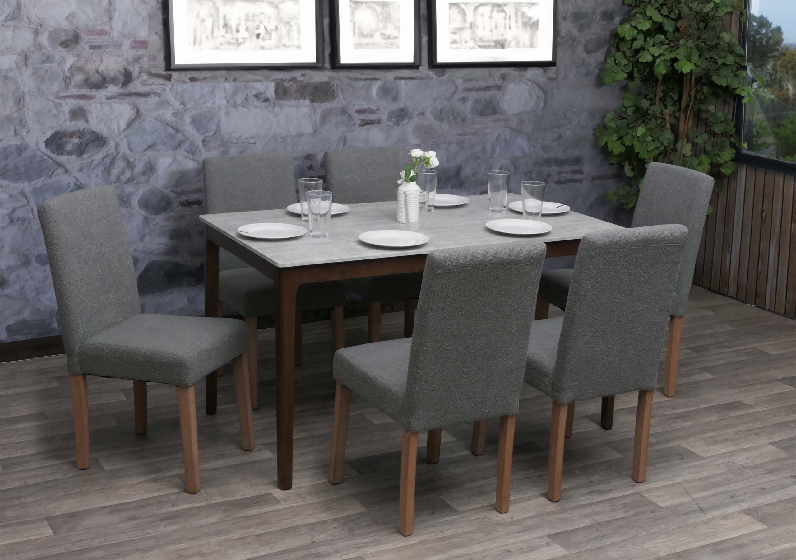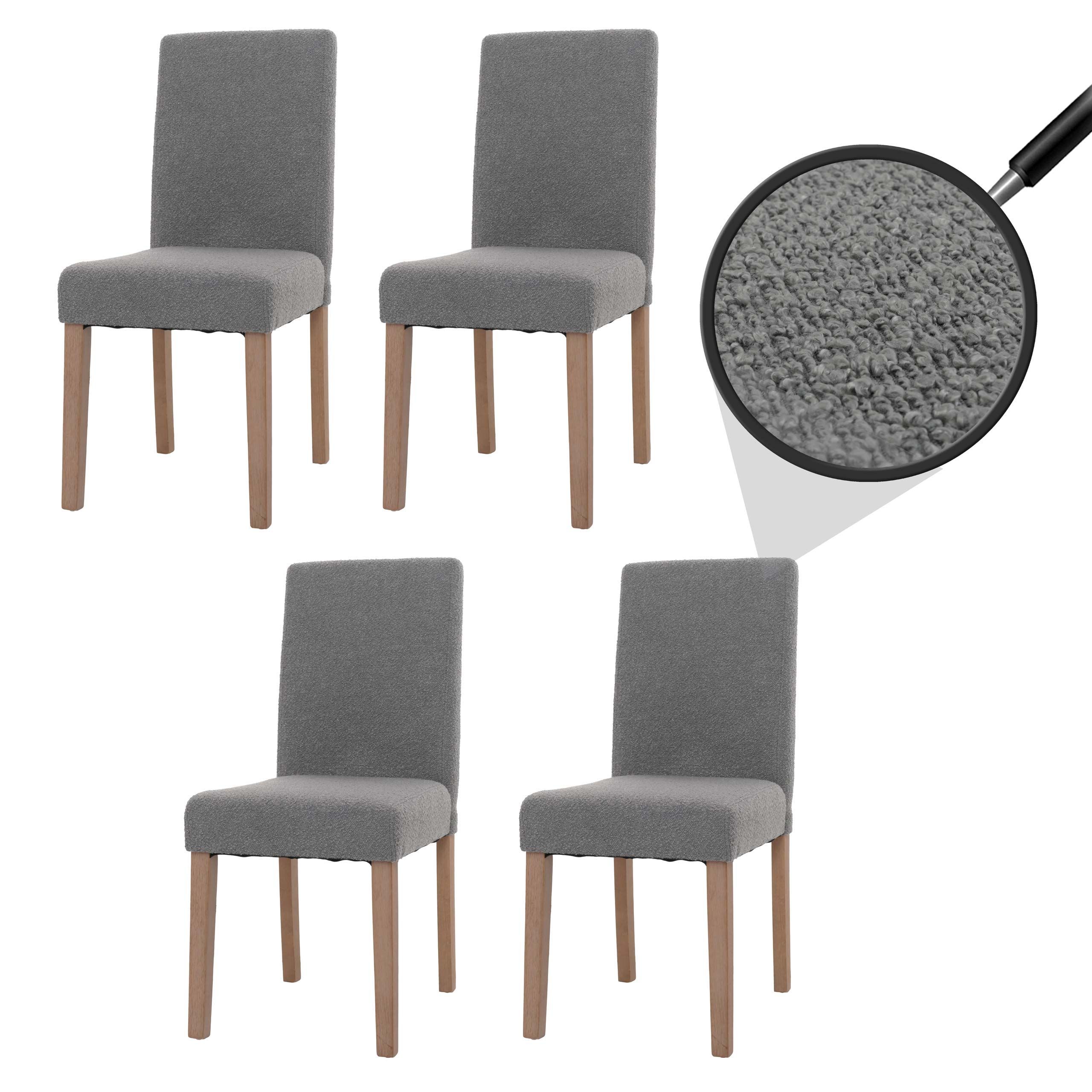Mendler 4er-Set Esszimmerstuhl Littau, Stuhl Küchenstuhl Hochlehner Stoff/Textil Bouclé Holz