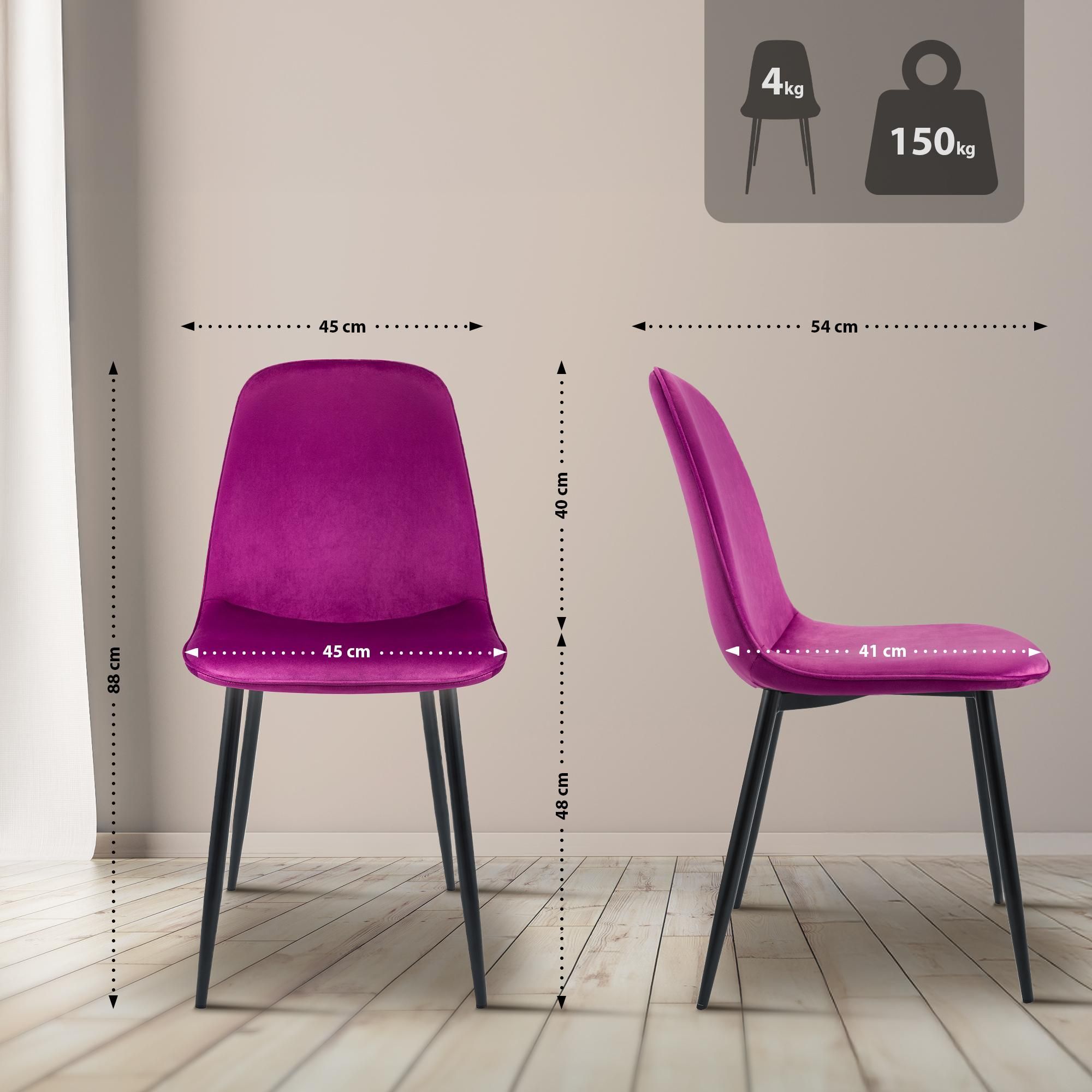 4er Set Esszimmerstuhl Maryam Samt, lila
