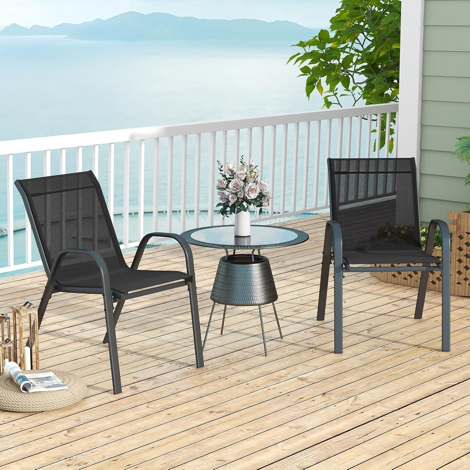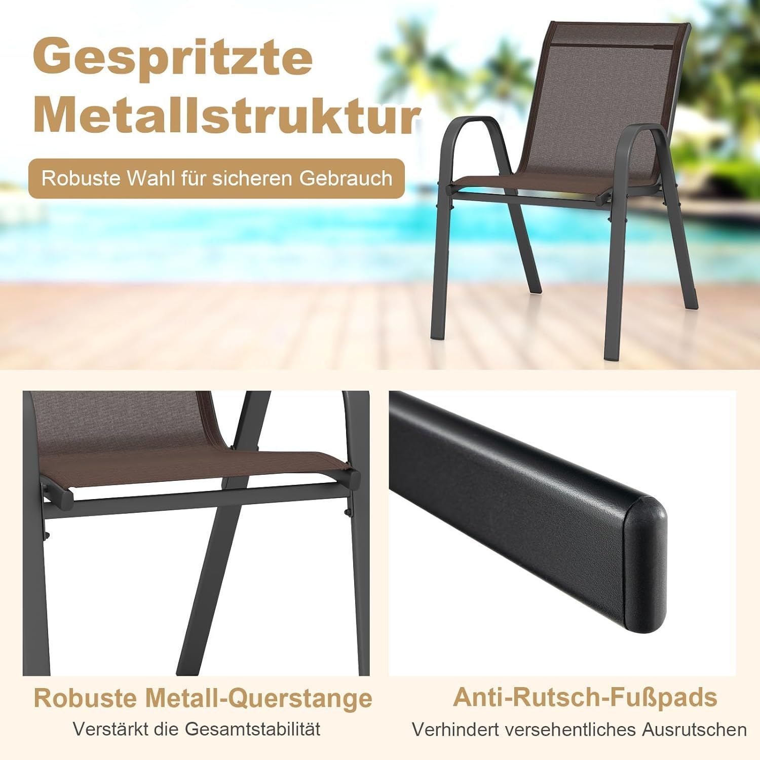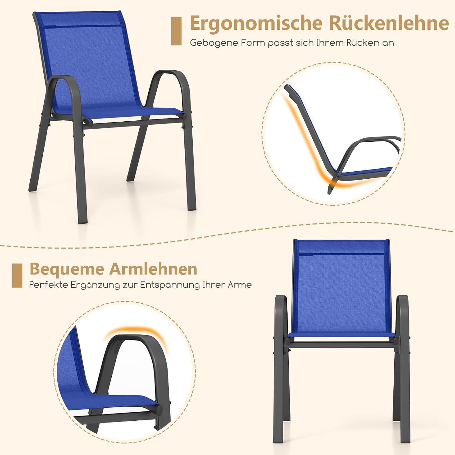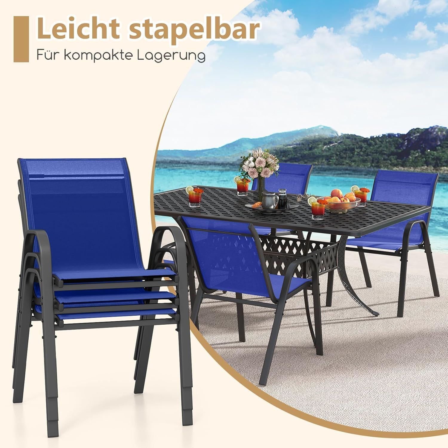 4er Set Gartenstühle stapelbar, Stapelstühle aus Textilene und Metallgestell