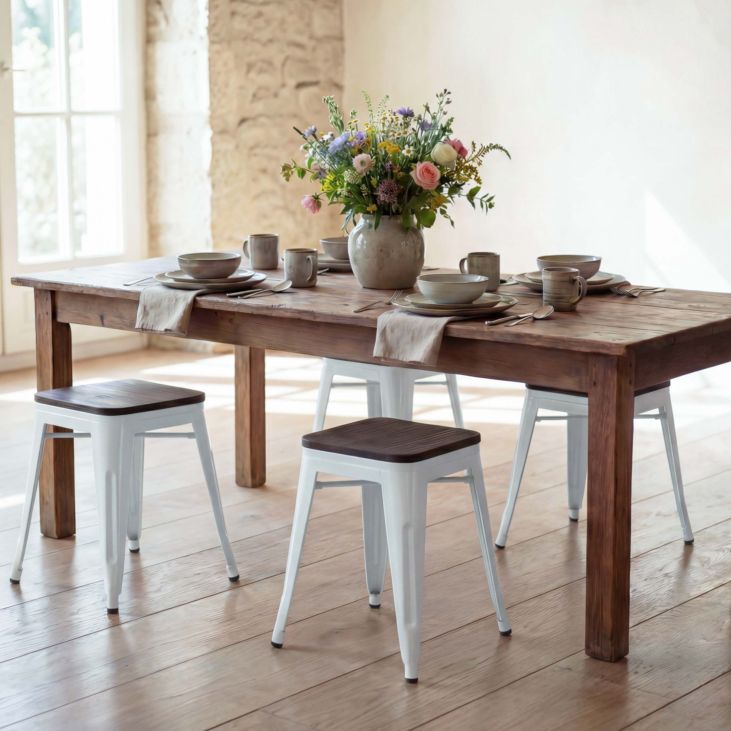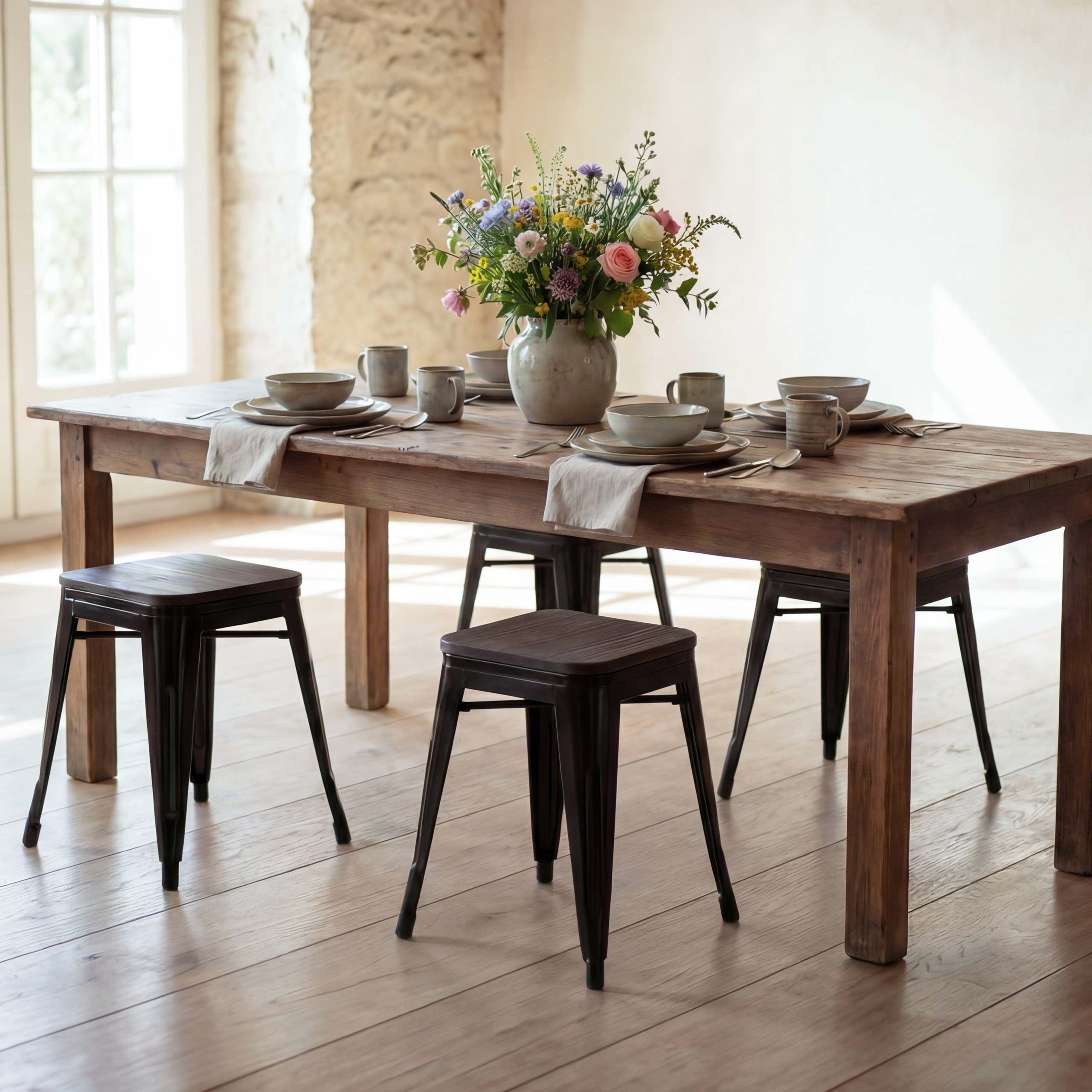 Mendler 4er-Set Hocker HWC-A73 inkl. Holz-Sitzfläche, Metallhocker Sitzhocker, Industrial