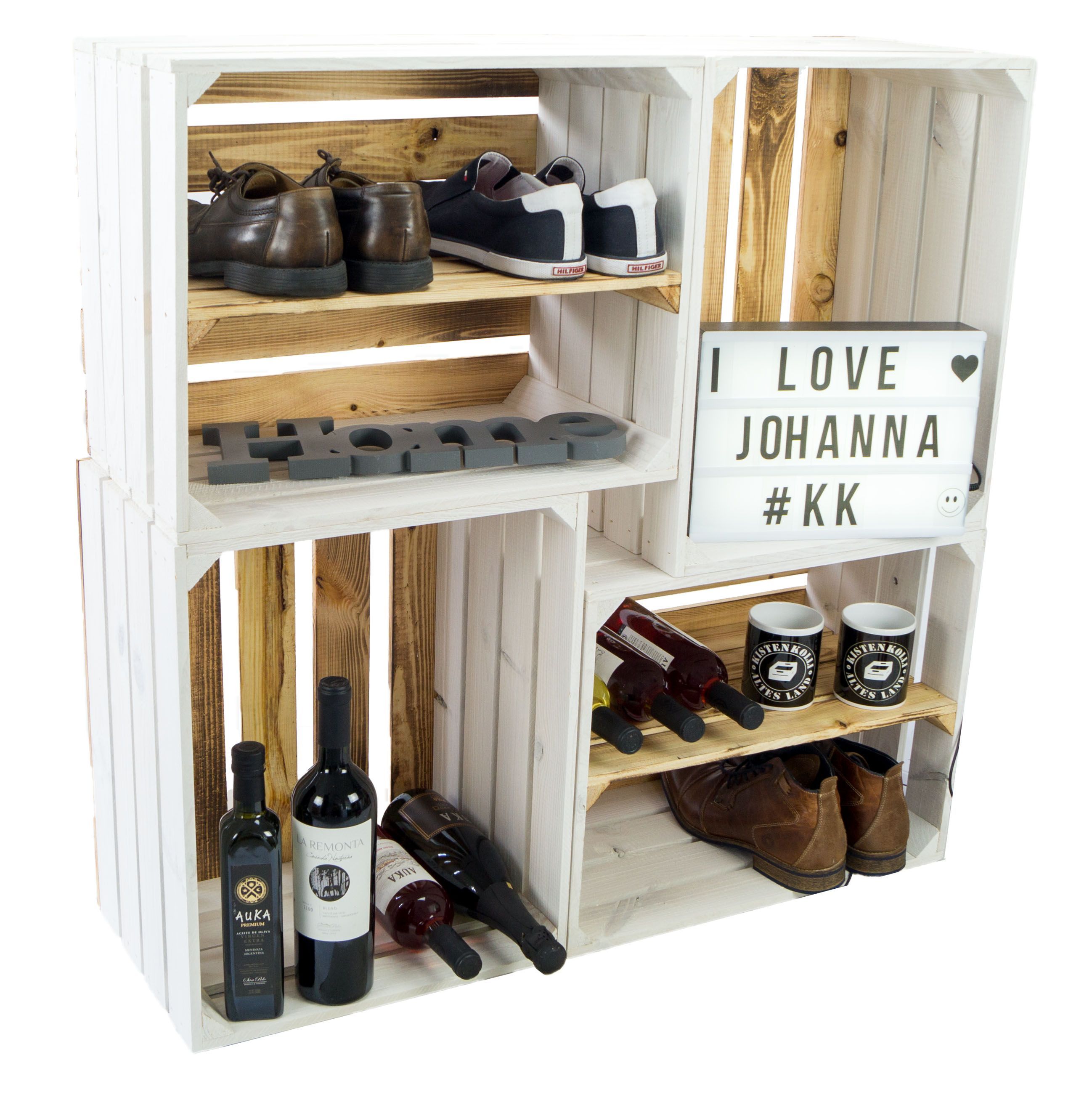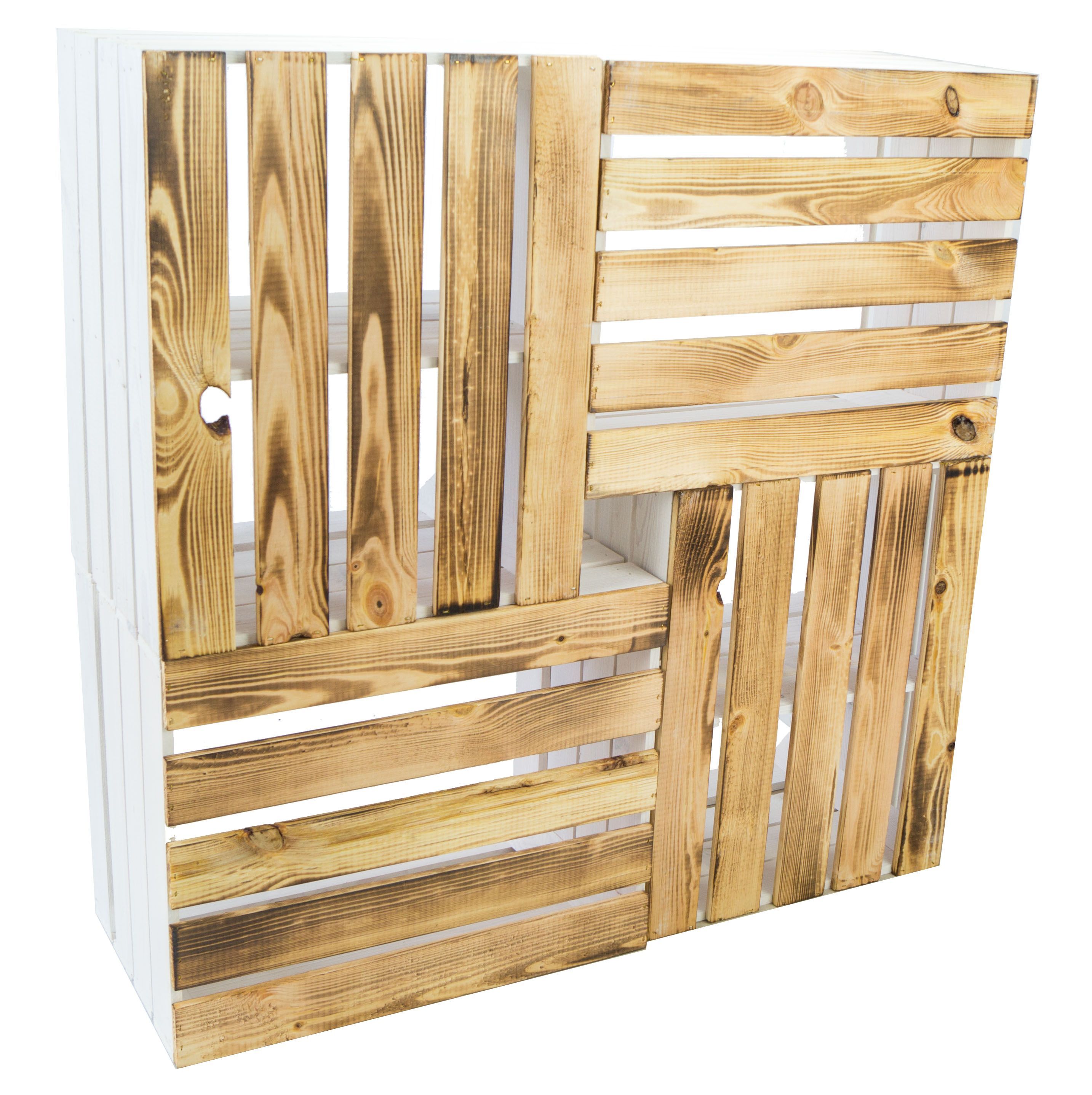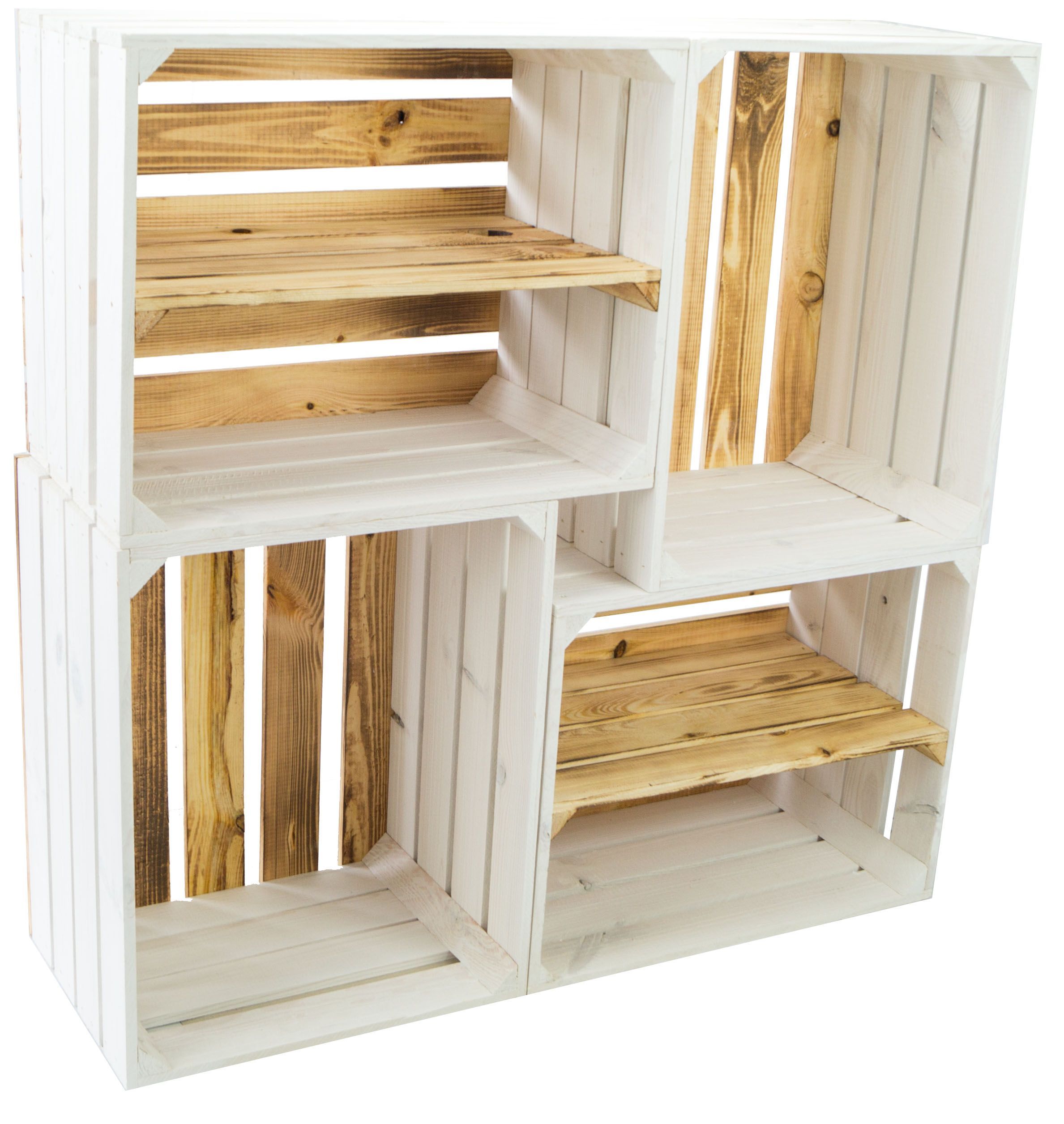 4er set Holzkisten weiss geflammt Couchtisch Schuhregal Wohnwand Kistenregal Weink