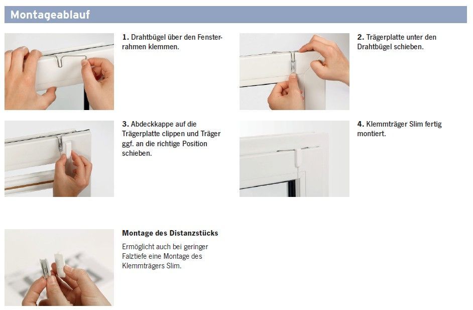 4er Set Klemmträger Slim für Plissee klemmen mit Metallbügel ohne bohren und kleben