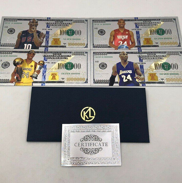 4 Sammelkarten Kobe Bryant von den Los Angeles Lakers Amerika wie abgebildet. + Kuvert und Zertifikat Eine wunderschöne Geschenk Idee oder einfach nur zum sammeln. Quality: 100% High Quality Material: PVC & Silber Foil Usage: For Collection, Home, Office Decor, Birthday , Business Gift And So On