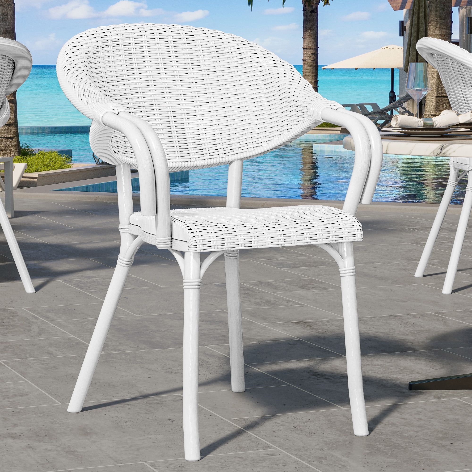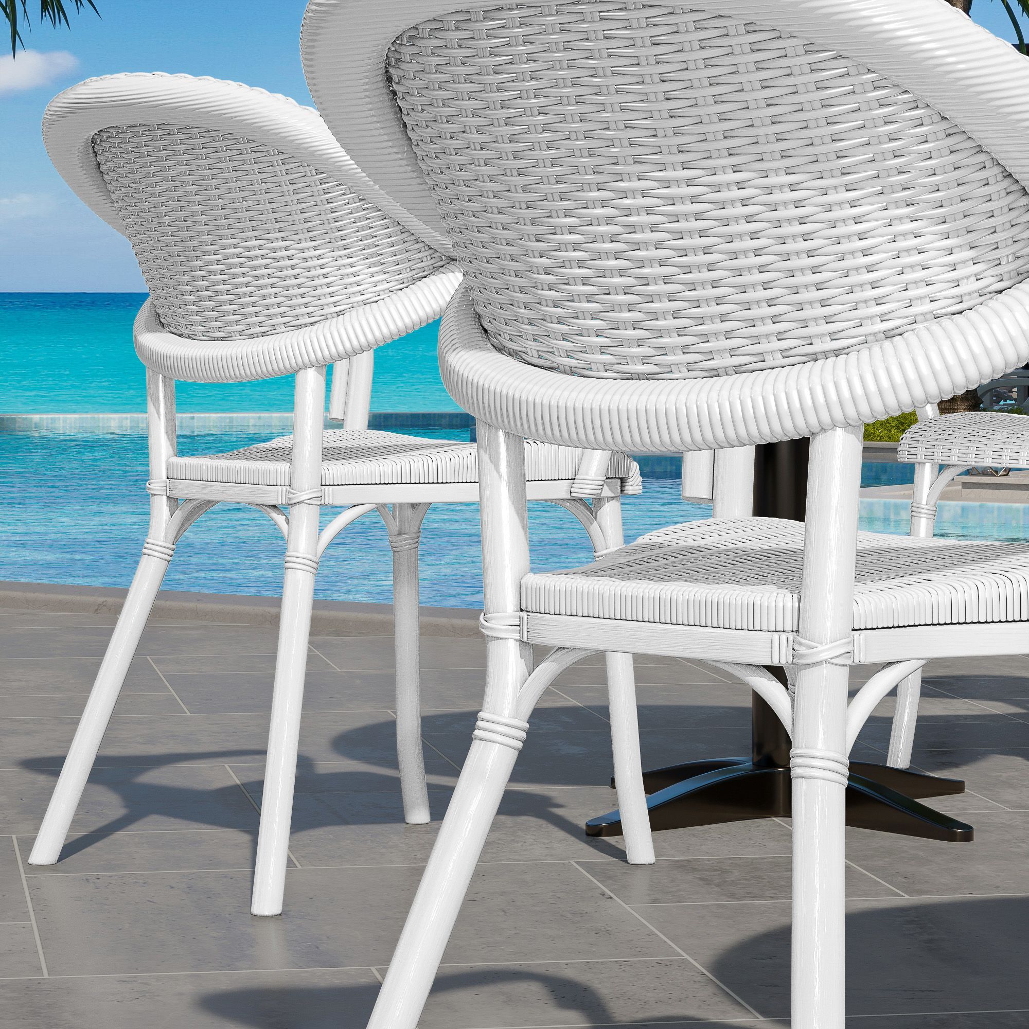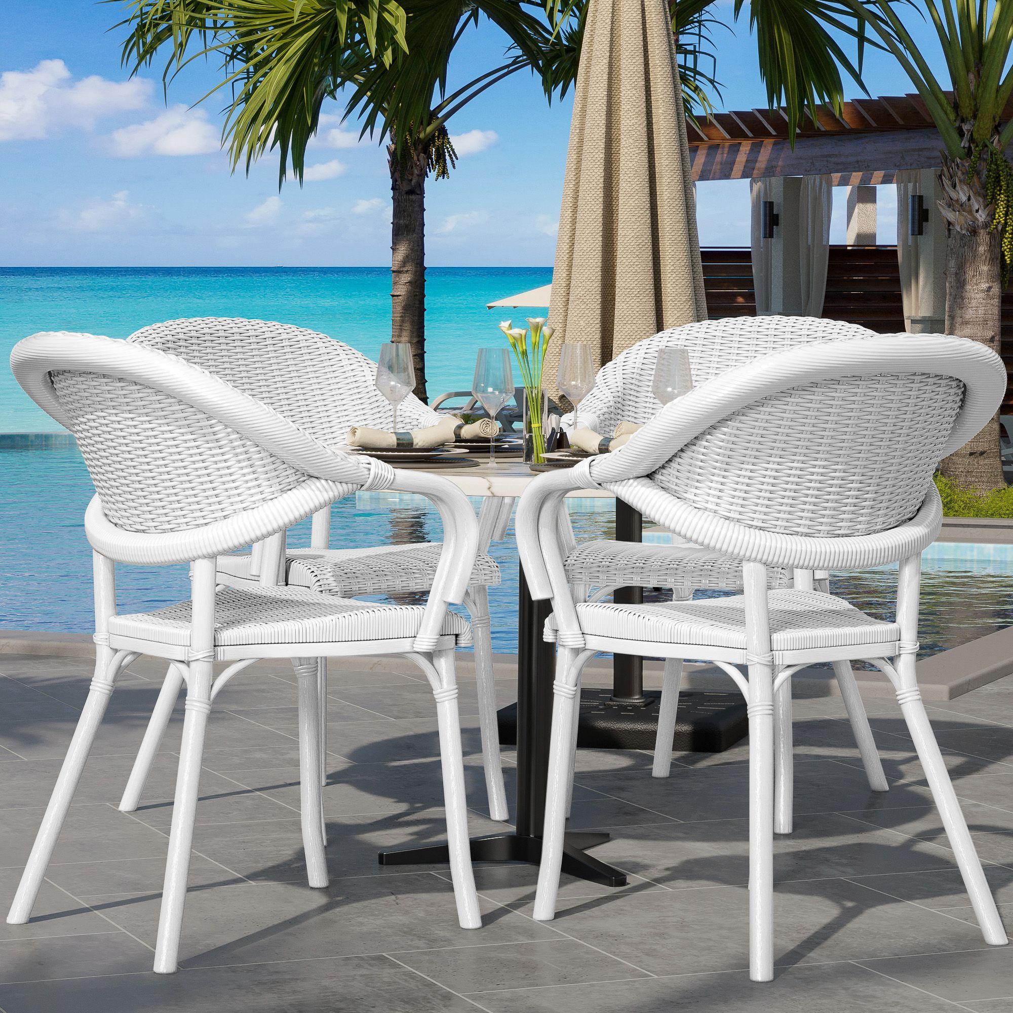4er-Set LAGOS | Bistro Rattanstuhl | Weiß | Kunststoff | Stapelbar | Gastro Rattanst
