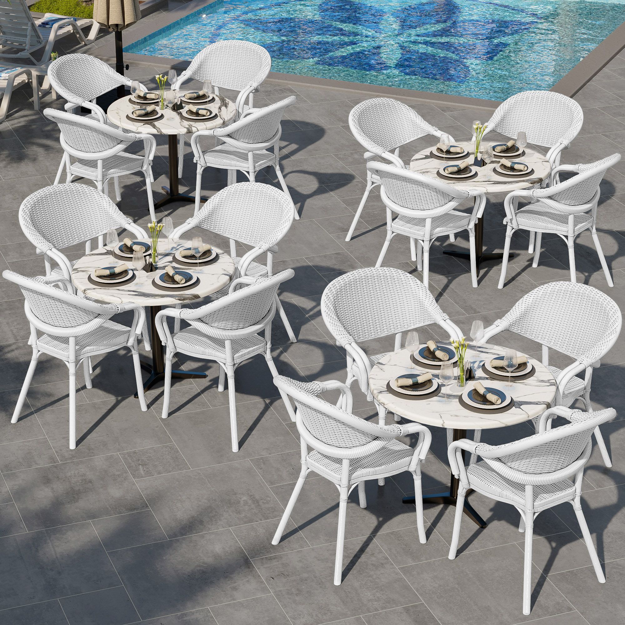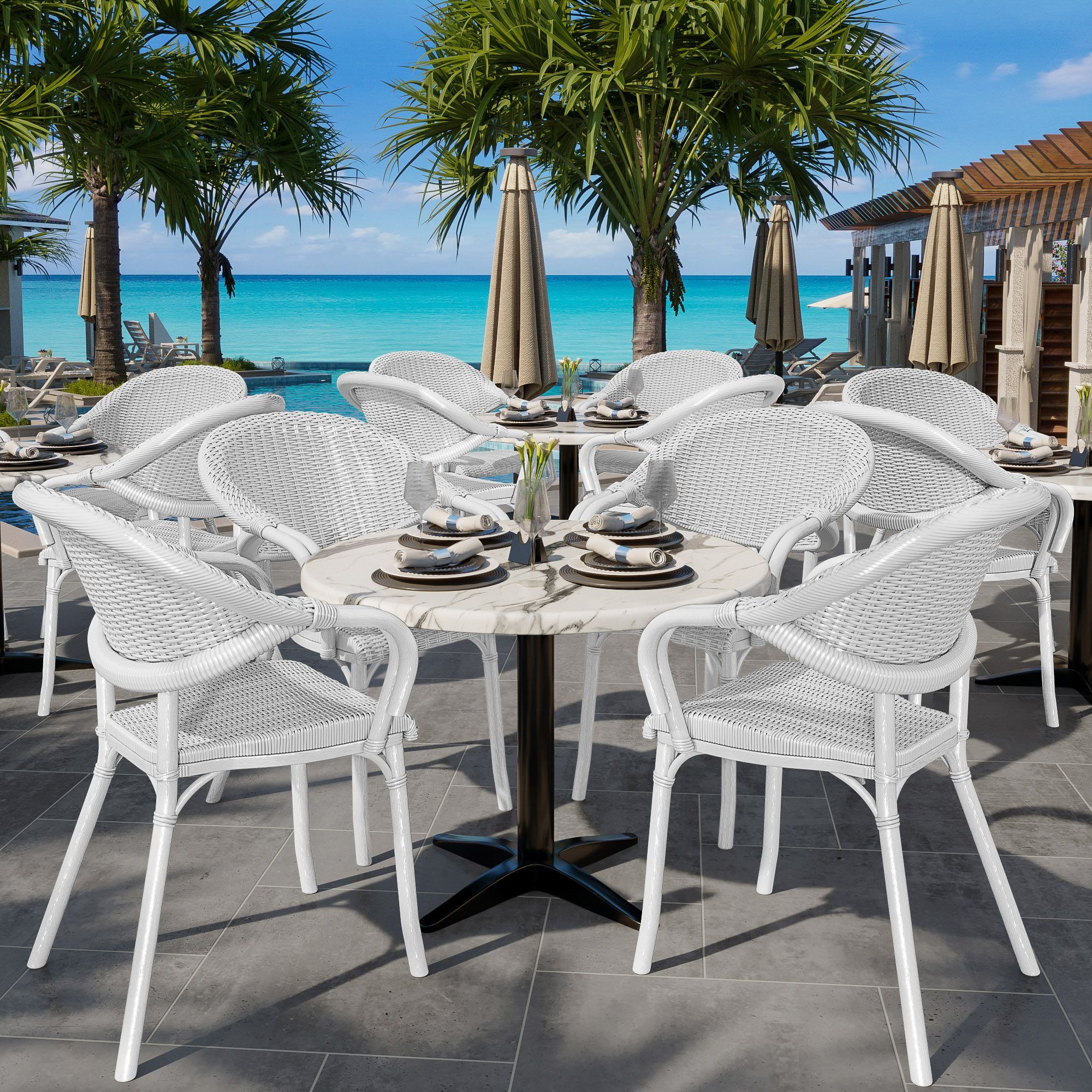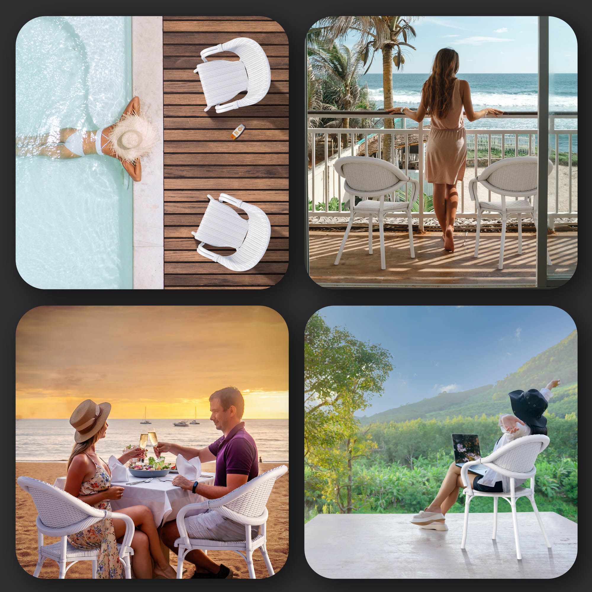 4er-Set LAGOS | Bistro Rattanstuhl | Weiß | Kunststoff | Stapelbar | Gastro Rattanst
