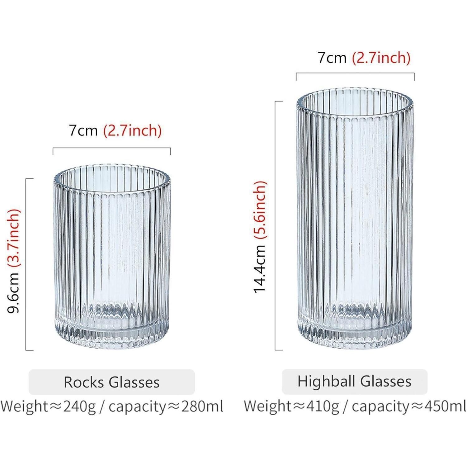 4er Set Origami-Stil Longdrinkgläser 280ml Cocktailgläser Geriffelte Gläser