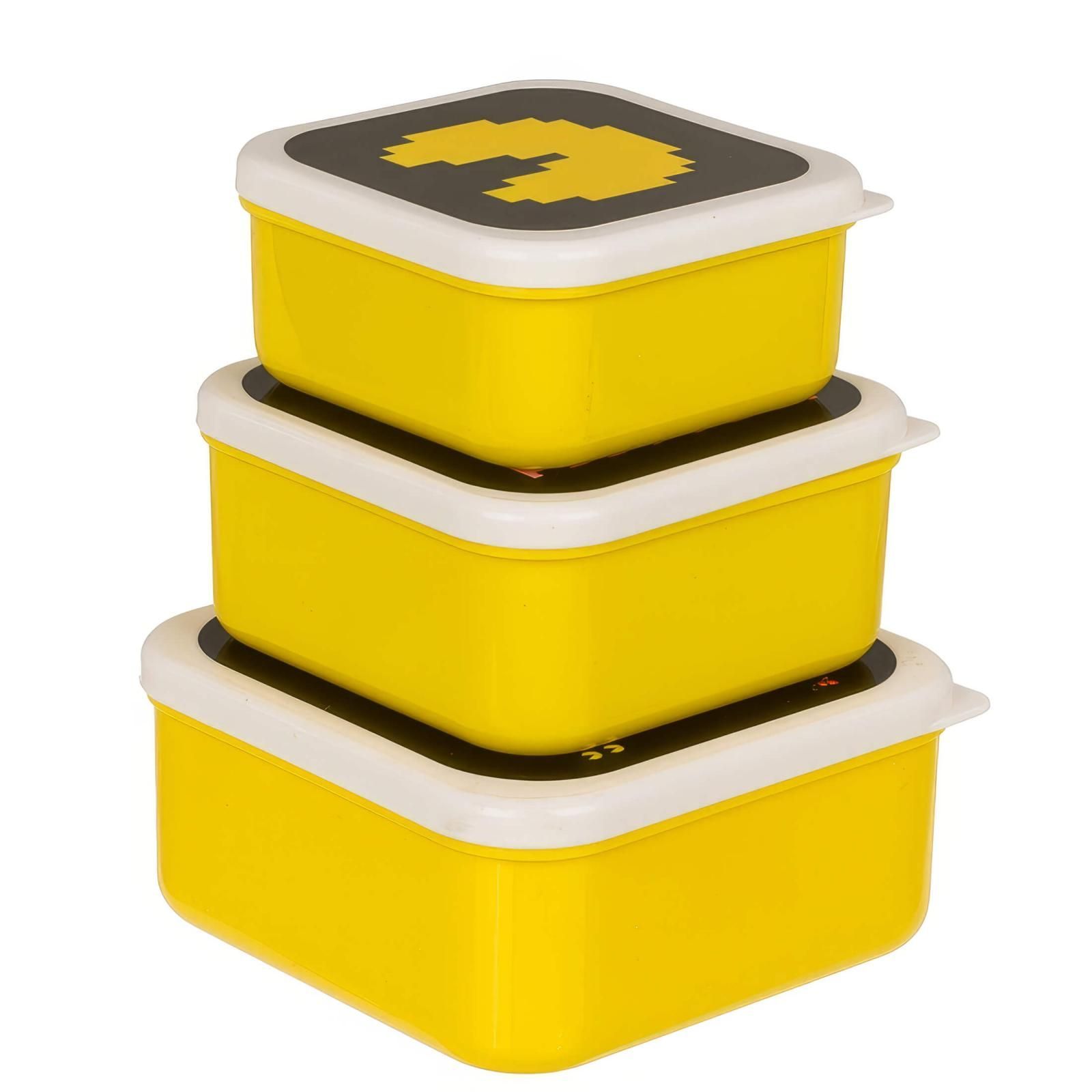 Out of the Blue 4er Set Pac-Man Lunchbox Brotdose Snackdose Pausenbrot Box mit Deckel Besteck