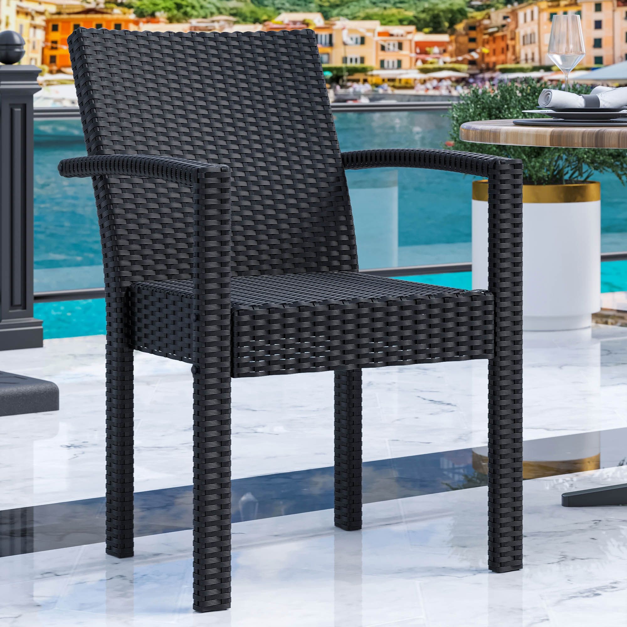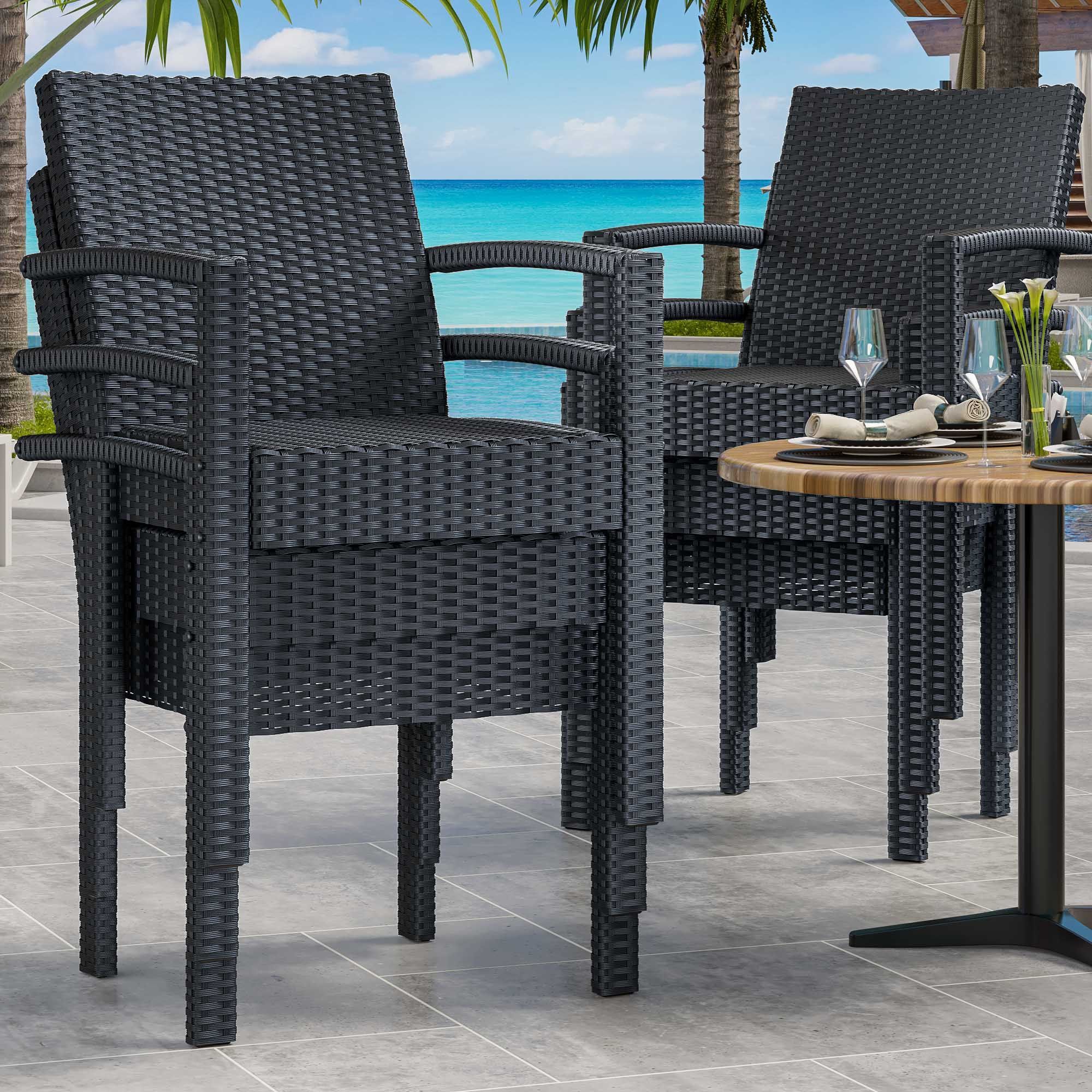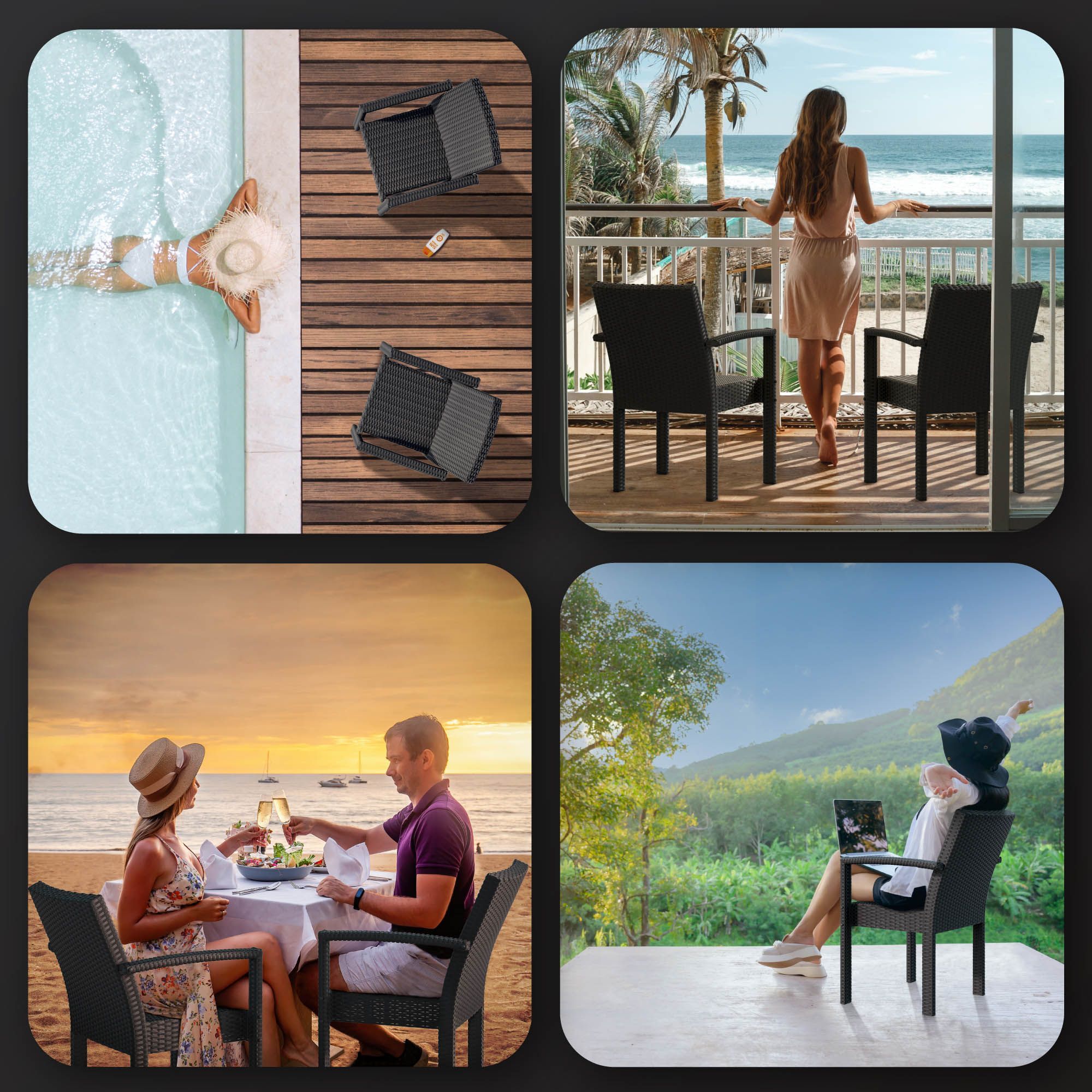 4er-Set RHODOS | Bistro Rattanstuhl | Schwarz | Kunststoff | Stapelbar | Gastro Ratt
