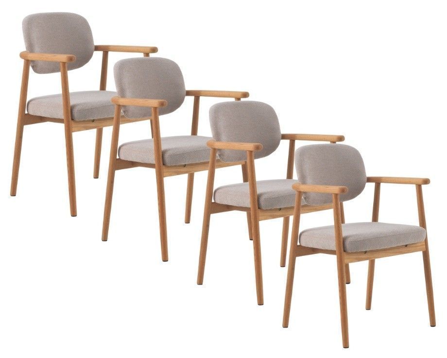 4er-set Sessel aus eichenholz mit beigefarbenem bezug