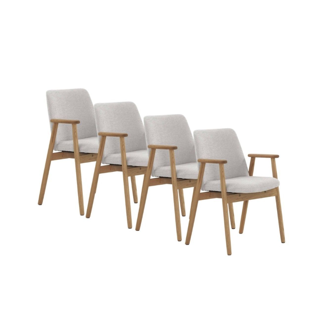4er-Set Sessel aus natürlichem Eichenholz mit Polsterung in Weiß
