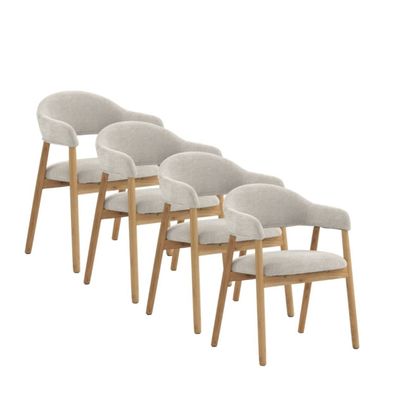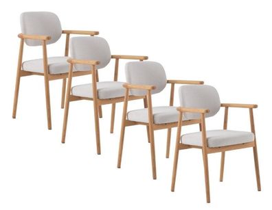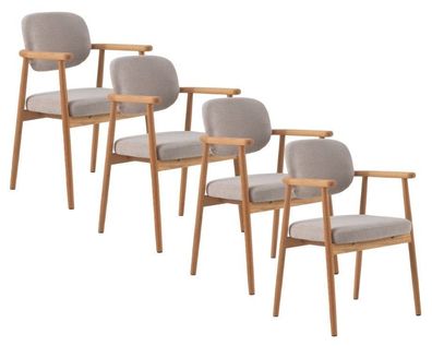 4er-Set Sessel aus natürlichem Eichenholz mit Polsterung in Beige