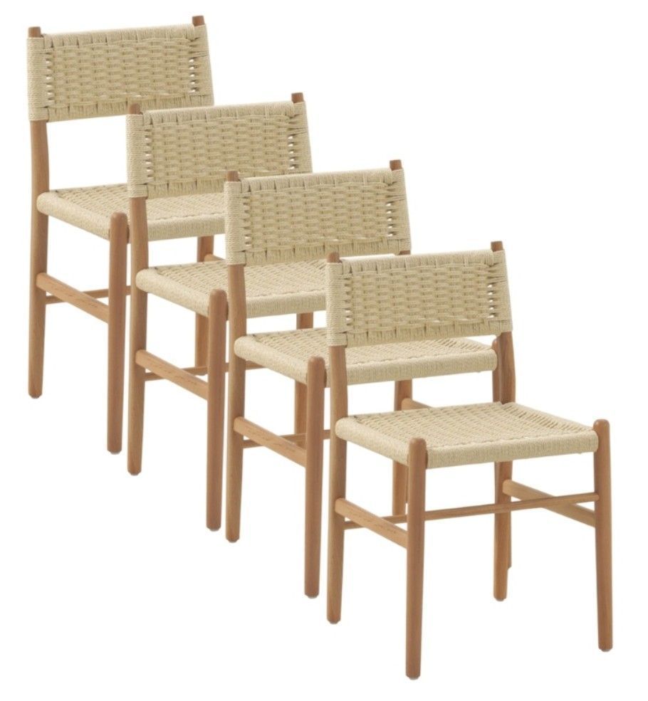 4er-Set Stühle aus Buchenholz mit geflochtener Sitzfläche