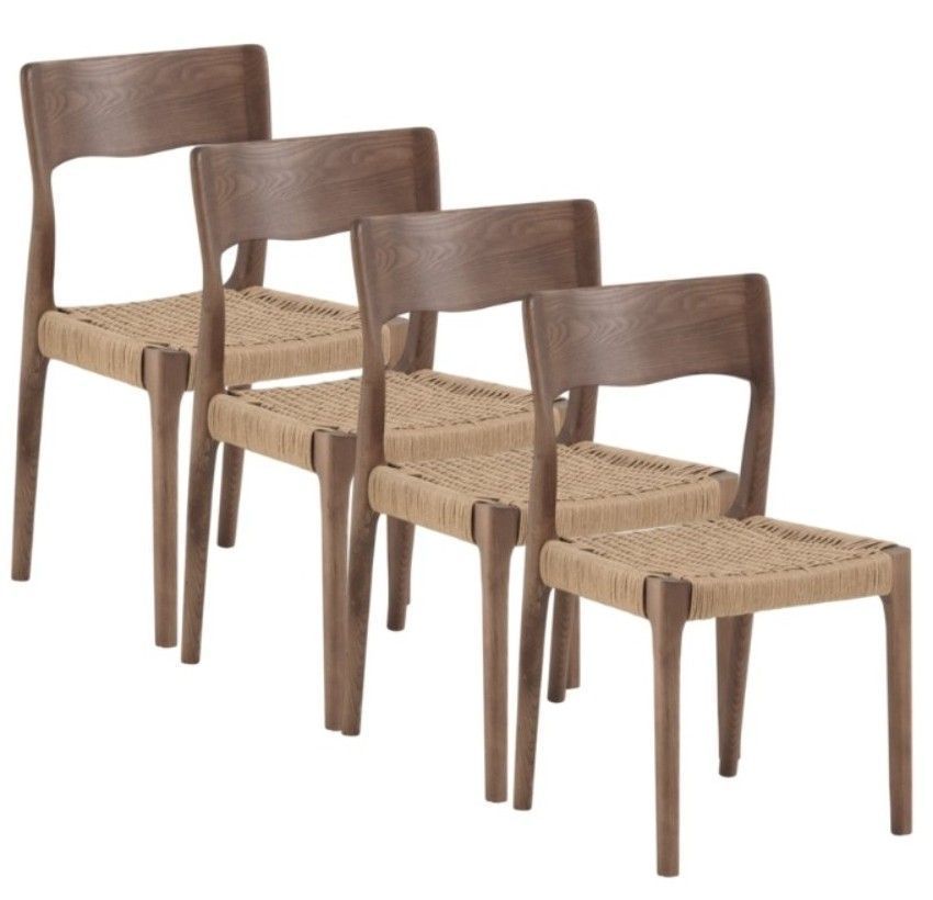 4er-Set Stühle aus Eschenholz in Nussbaumoptik