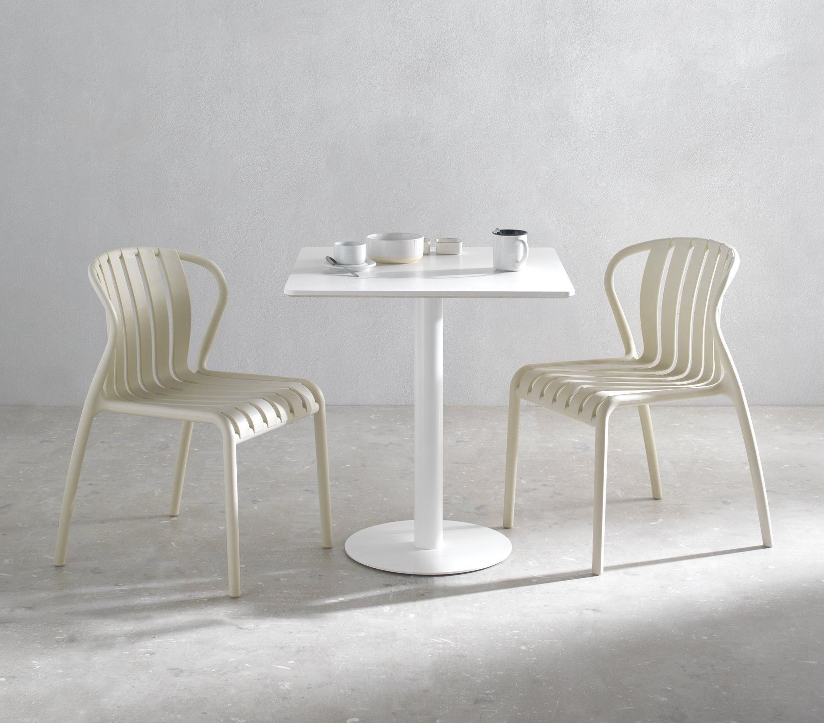4er-Set Stühle aus Polypropylen, cremefarben