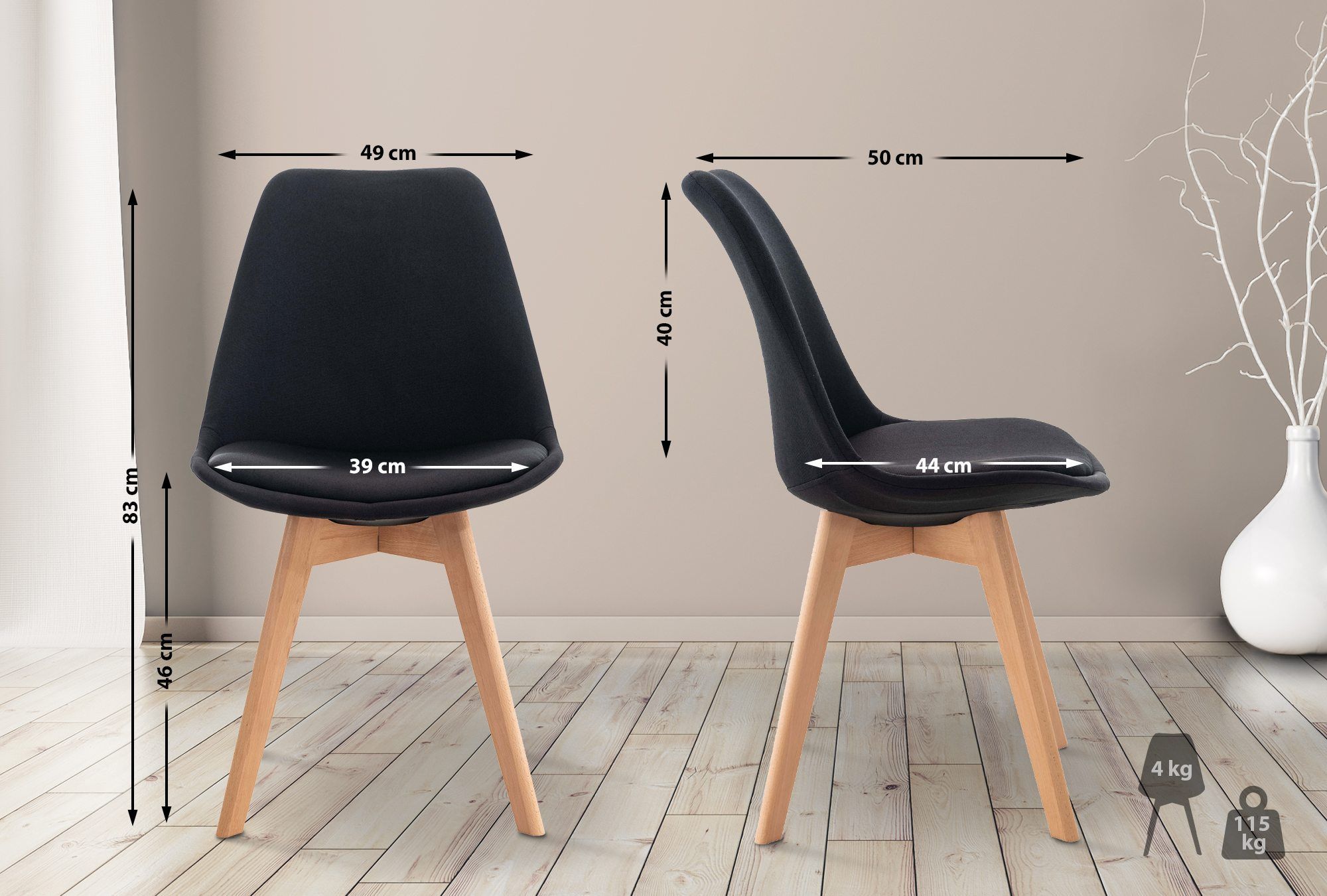 4er Set Stuhl Linares Stoff, schwarz