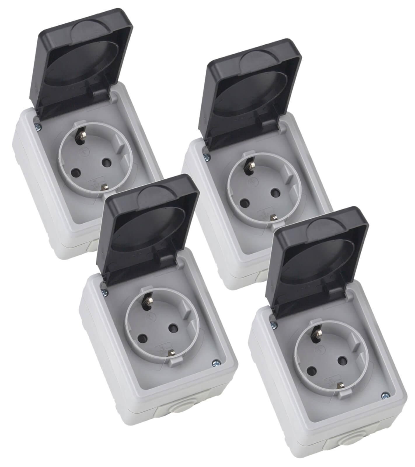 ETT 4er Set TAFF Feuchtraum Steckdose IP44 Aufputz AP 250V 16A grau