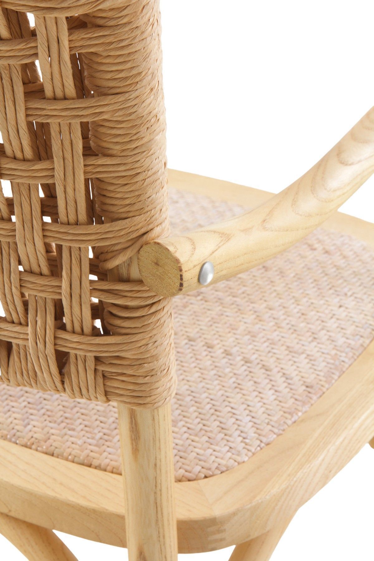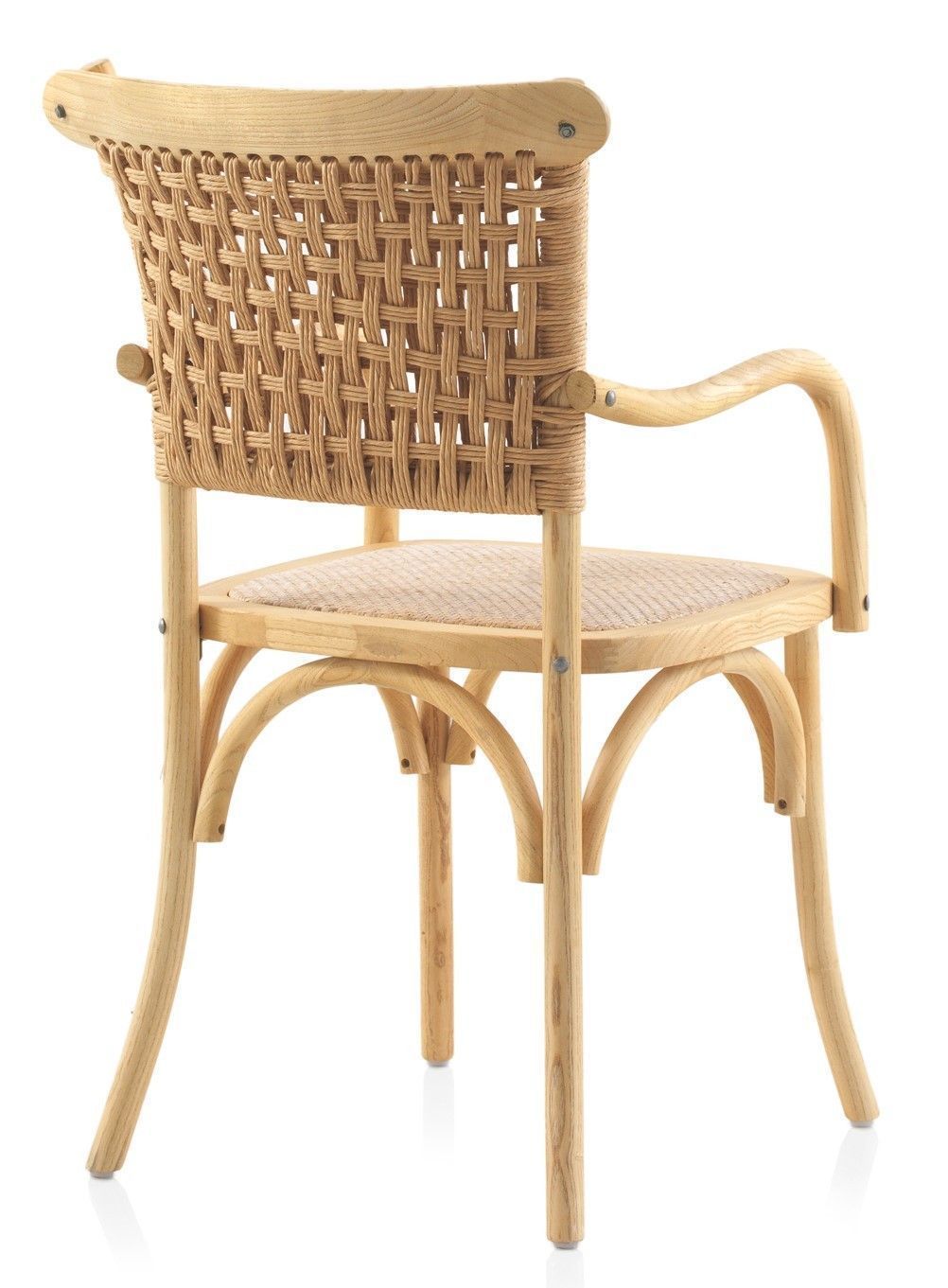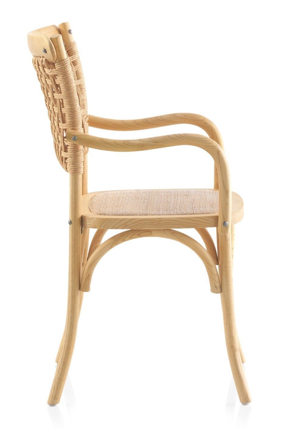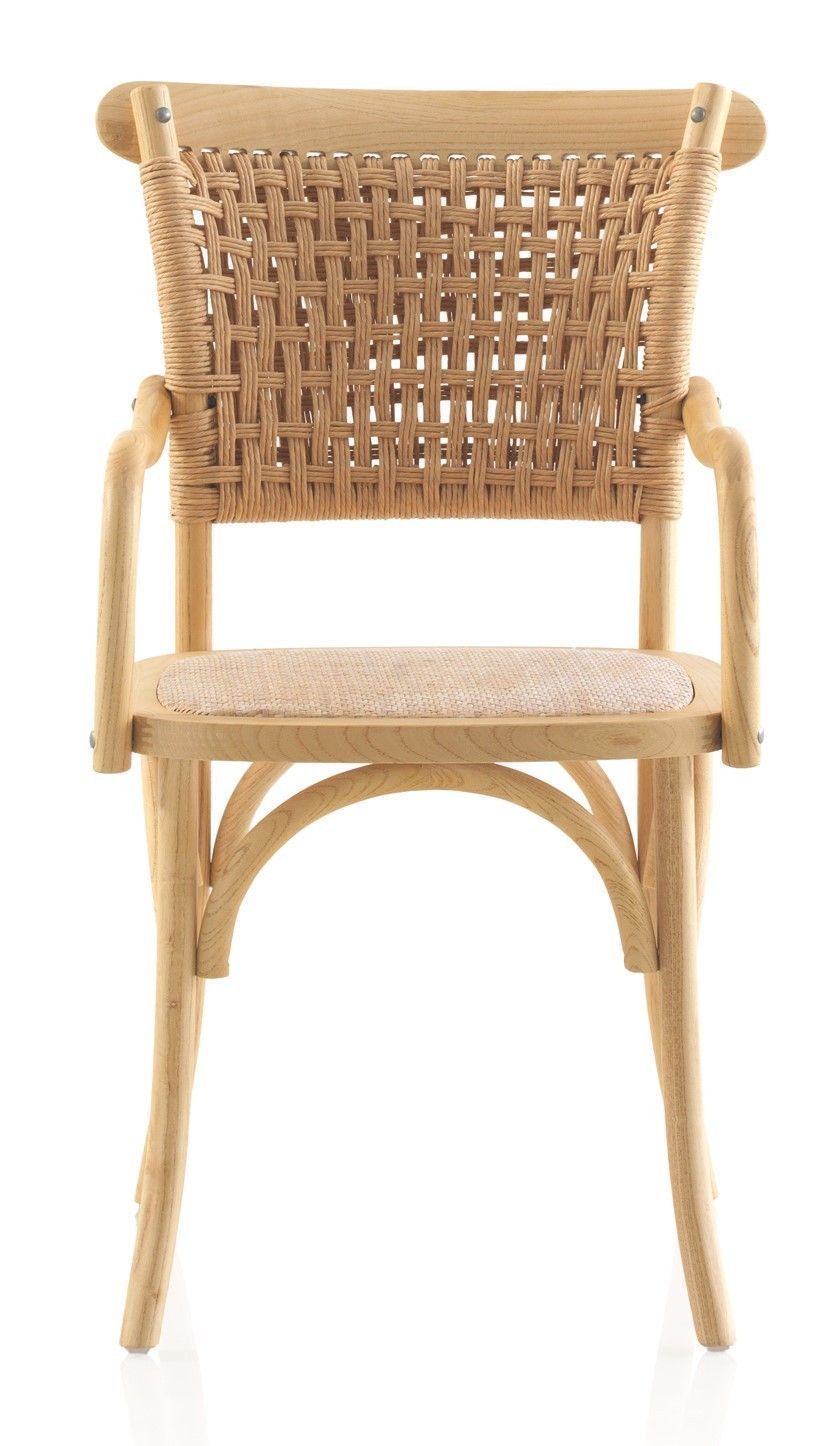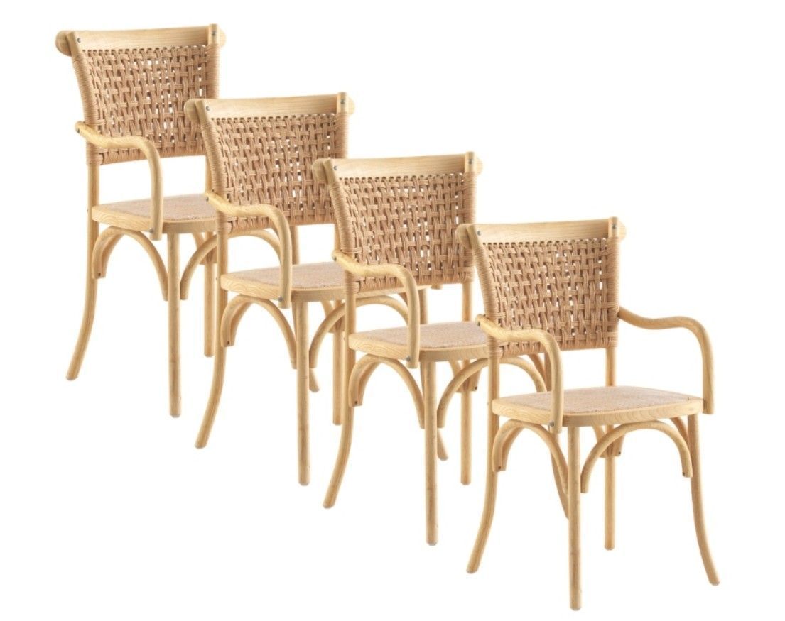 4er Set Ulmenholzstühle mit geflochtener Sitzfläche und Rückenlehne