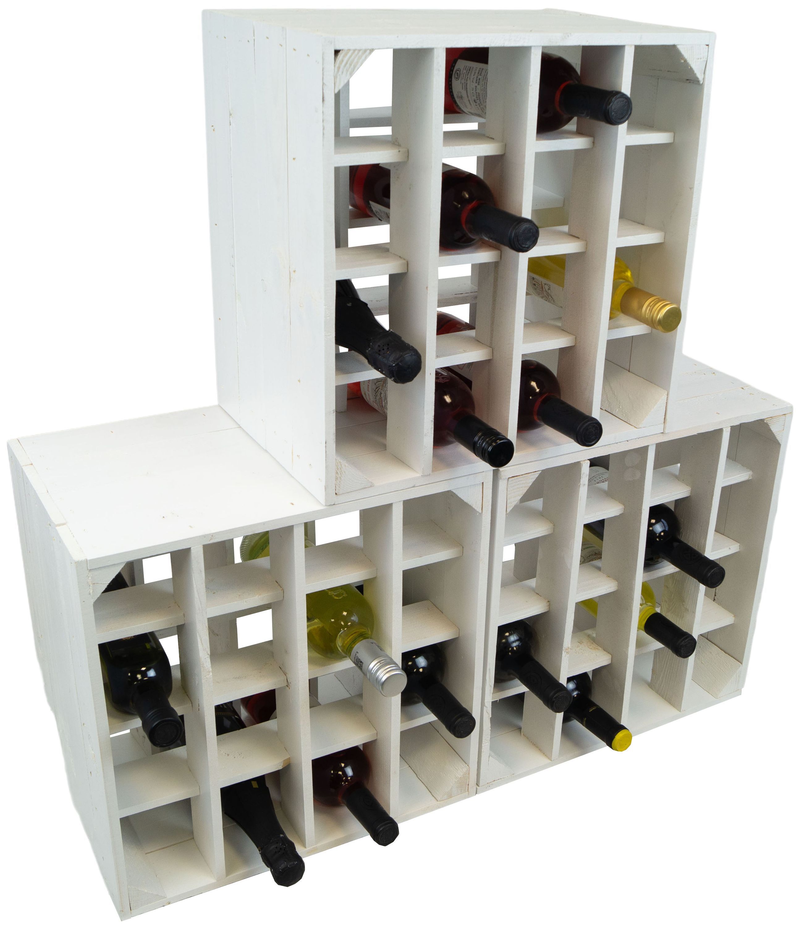 4er Set Weinregal 16er weiss Abstellregal Weingestell Fächer Flaschenregal Weinsch