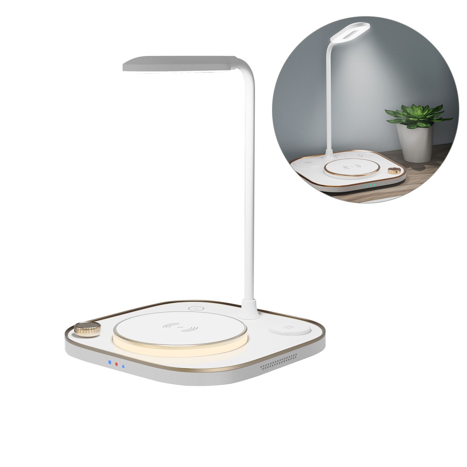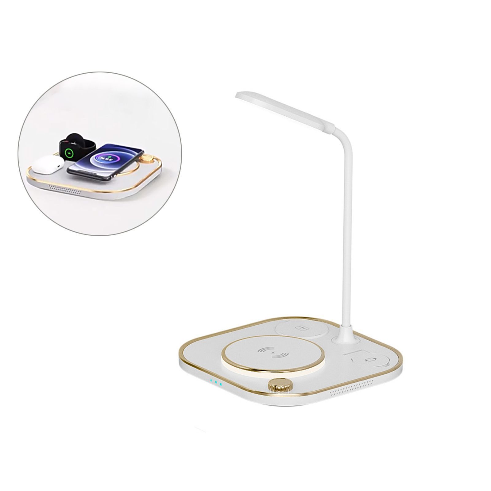 4in1 LED Ladestation Tischlampe Qi Wireless Charger kabellos Leselampe Leuchte