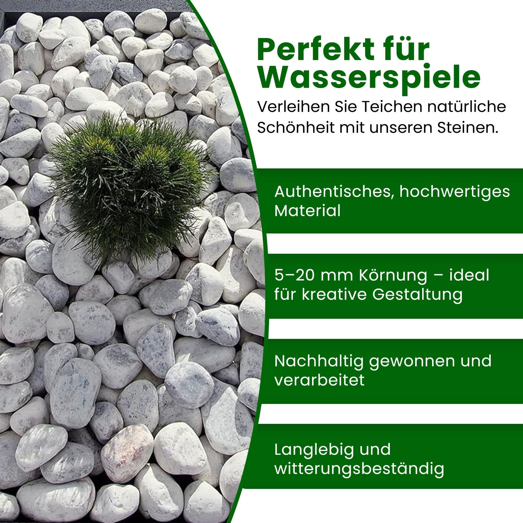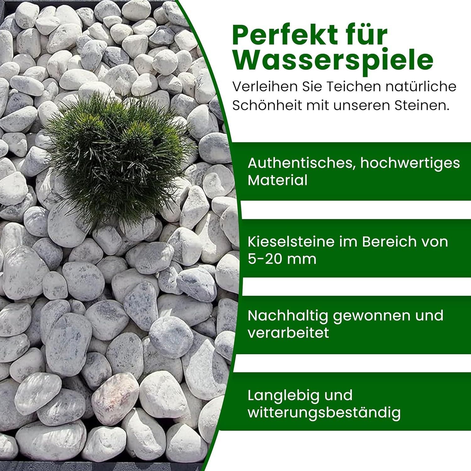4myBaby Weiße Kieselsteine 5-20 mm Zierkies Natursteine für Garten Beete Wege Deko