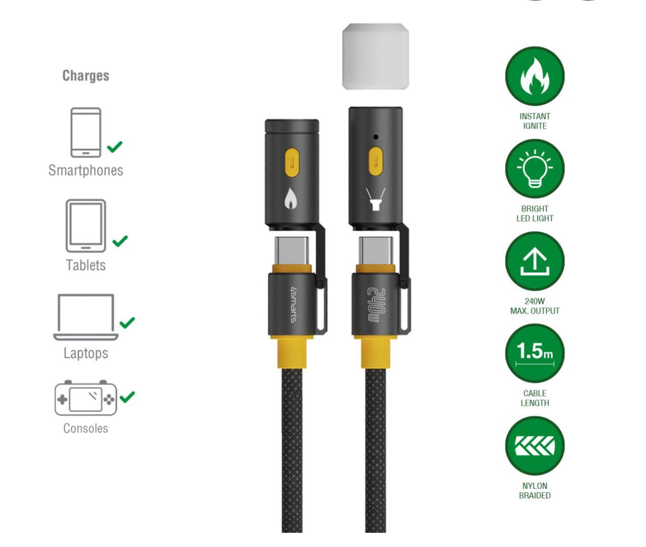 4smarts 3in1 USB-C Kabelset Explorer 240W 1,5m schwarz